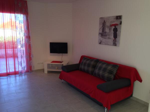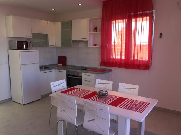 Super apartma, zelo čisto in prostorno. Kuhinja je odlično opremljena, dovolj posode in ostalih pripomočkov. Terasa je velika, z ležalniki in obdana z lepim nasadom sivke in oljk. Lokacija je blizu plaže in centra mesta. Vse je na dosegu roke. Lastnika sta zelo prijazna. Priporočamo!