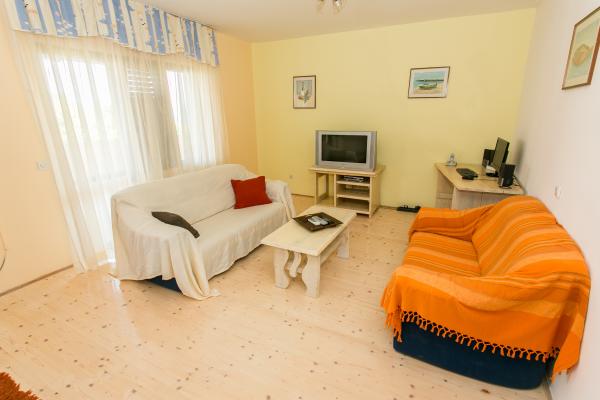 Apartma je velik in prostoren (100m2) in terasa (25m2) s čudovitim pogledom na morje. Apartma ima parkirno mesto in okolico. Apartma ima lasten vrt, kjer obstaja roštilj.Atraktivna plaža z veliko le 2 min hoje. V apartmaju lahko uživate in se sprostite, in če želite vse svoje dejavnosti v blizini.Apartman se nahaja v mirni soseski z lokalnimi prebivalci.