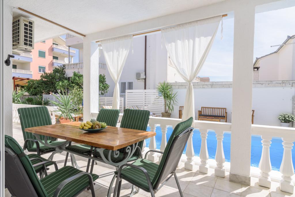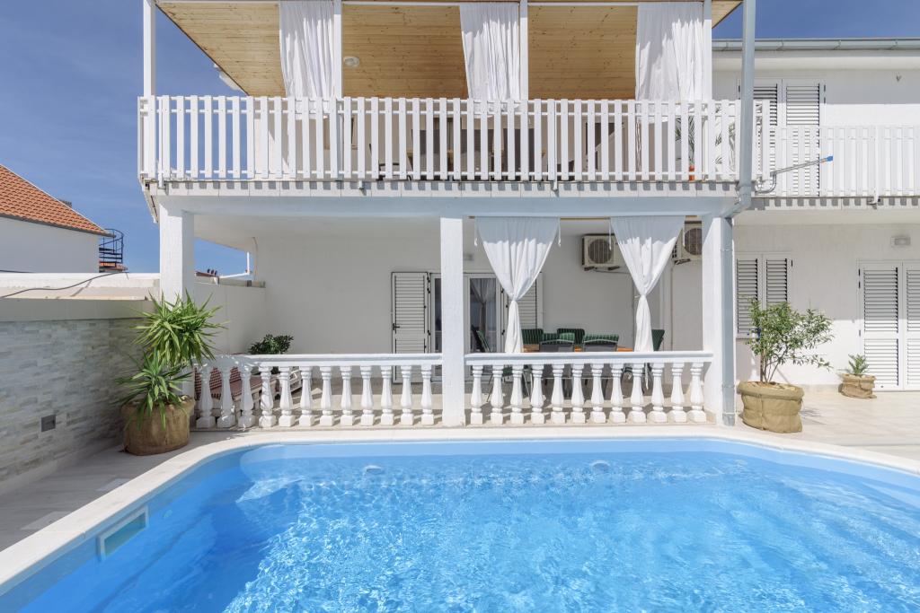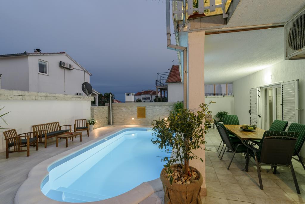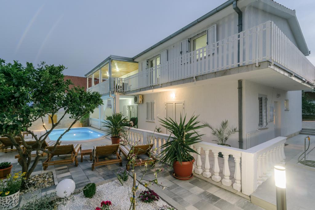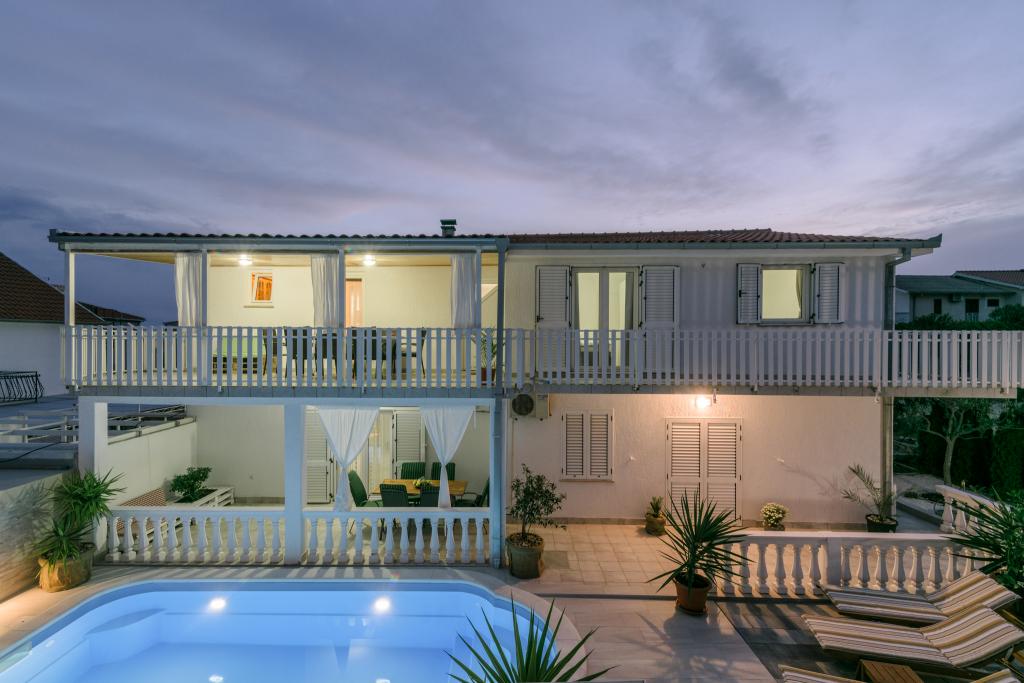 To je družinska hiša z bazenom, ki se nahaja v mirnem delu Okruga Gornjega, v bližini plaže, restavracij in centra Okruga Gornjega. Ponujamo dva apartmaja za 4 in 6 oseb, s parkiriščem za vse goste. ID apartmaja: 26110 se nahaja na prvo nadstropje, sestoji iz 3 spalnic, kopalnice, dnevne sobe, popolnoma opremljene kuhinje in velike terase s pogledom na morje, stanovanje je primerno za dve družini ID apartmaja: 26111 se nahaja v pritličju, sestoji iz 2 spalnici, kopalnice, dnevne sobe soba, popolnoma opremljena kuhinja in velika terasa ob kateri se nahaja bazen z ležalniki in žarom Apartmaji so veliki in udobni ter imajo velike terase Vsi apartmaji imajo pralni stroj V bližini apartmaja se nahaja mini market, restavracija, športni center Možnost za najem celotne hiše!