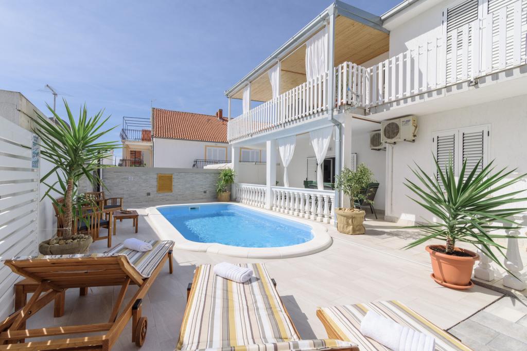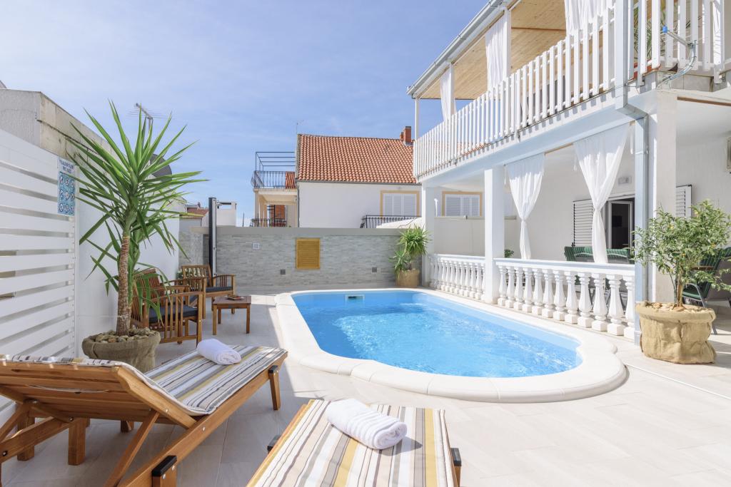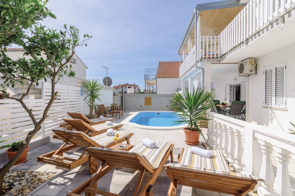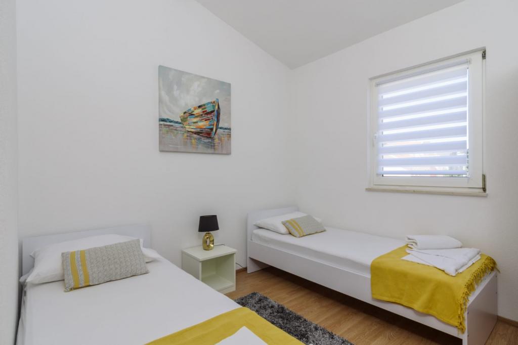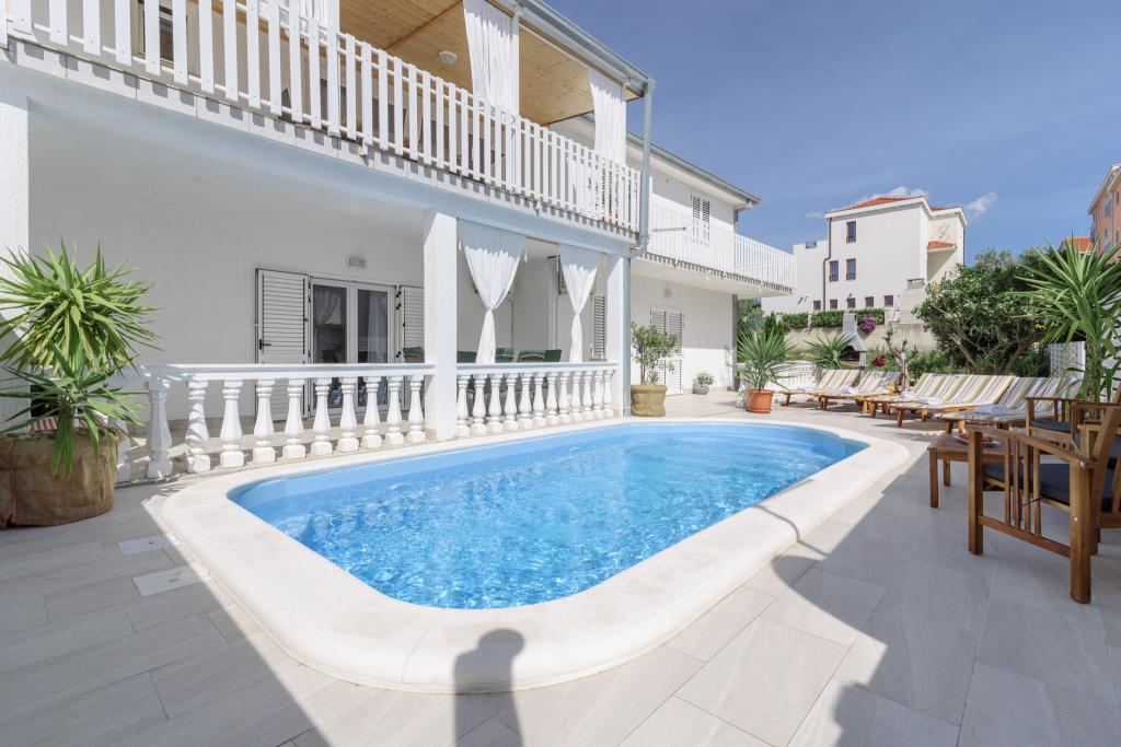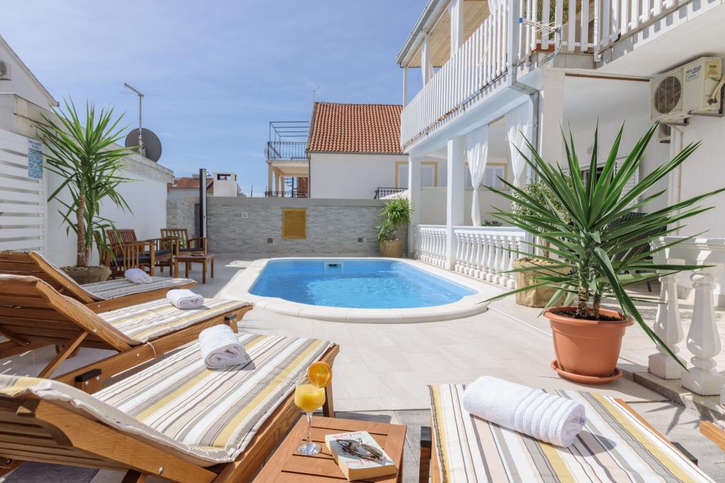 To je družinska hiša z bazenom, ki se nahaja v mirnem delu Okruga Gornjega, v bližini plaže, restavracij in centra Okruga Gornjega. Ponujamo dva apartmaja za 4 in 6 oseb, s parkiriščem za vse goste. ID apartmaja: 26110 se nahaja na prvo nadstropje, sestoji iz 3 spalnic, kopalnice, dnevne sobe, popolnoma opremljene kuhinje in velike terase s pogledom na morje, stanovanje je primerno za dve družini ID apartmaja: 26111 se nahaja v pritličju, sestoji iz 2 spalnici, kopalnice, dnevne sobe soba, popolnoma opremljena kuhinja in velika terasa ob kateri se nahaja bazen z ležalniki in žarom Apartmaji so veliki in udobni ter imajo velike terase Vsi apartmaji imajo pralni stroj V bližini apartmaja se nahaja mini market, restavracija, športni center Možnost za najem celotne hiše!
