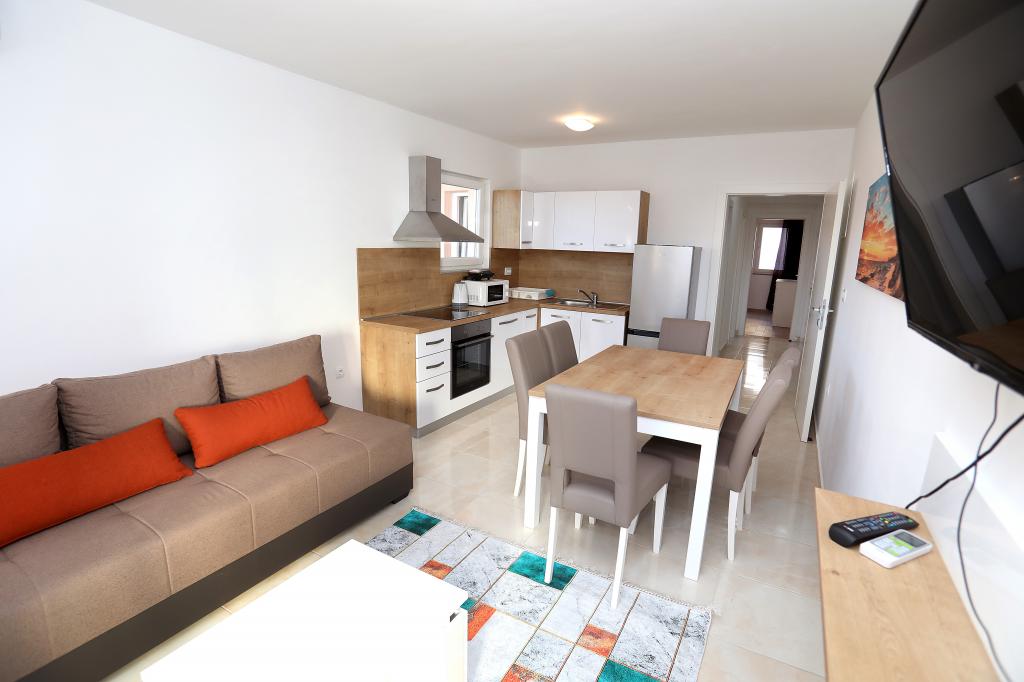 Popolnoma in sodobno opremljeni apartmaji na mirni lokaciji, blizu morja, približno 7 minut hoje do plaže, 15 minut vožnje z avtomobilom do središča mesta. V bližini so trgovine, pošta, kavarne in restavracije ... in vsi ostali potrebni objekti.