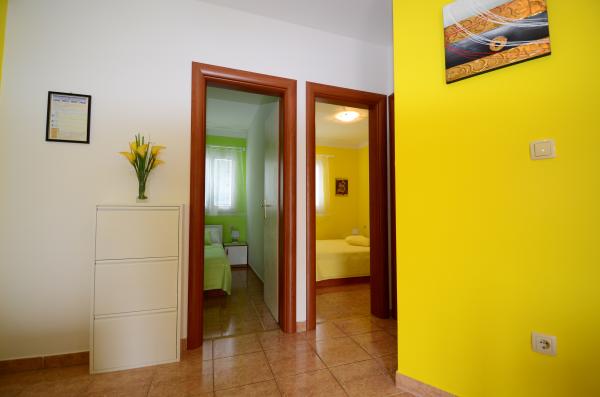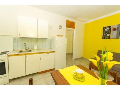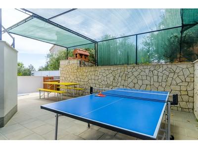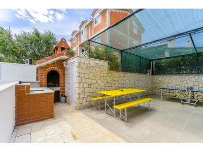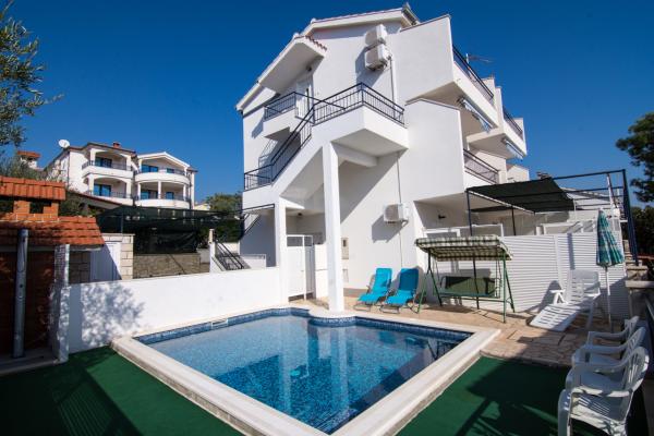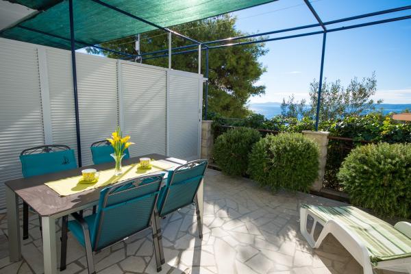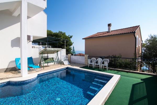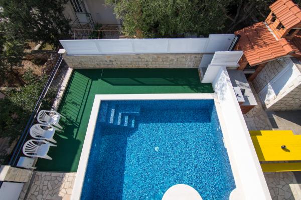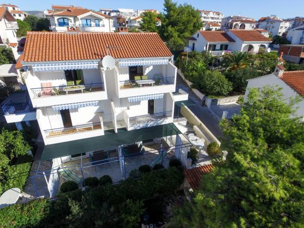 Hiša se nahaja v mirnem delu otoka Čiovo, Okrug Gornji, le 4 km od Trogirja. Objekt se nahaja na majhni višini, ki je od morja oddaljena le 100 m, zato imajo vsi apartmaji čudovit pogled na morje in otoke Šolta, Brač in Hvar. Hiša je oddaljena od glavnih cest in je zelo primerna za mirne družinske počitnice. Vsi apartmaji so moderno opremljeni, na dvorišču je zunanji tuš, nato žar, namizni tenis, v neposredni bližini pa je ločen parkirišče. Hiša ima 6 apartmajev za 4 osebe. Vsak apartma ima 1 dodatno ležišče, ki ga lahko uporabljajo otroci, mlajši od 12 let. Bazen vključuje 5. 20 x 3. 90 m.