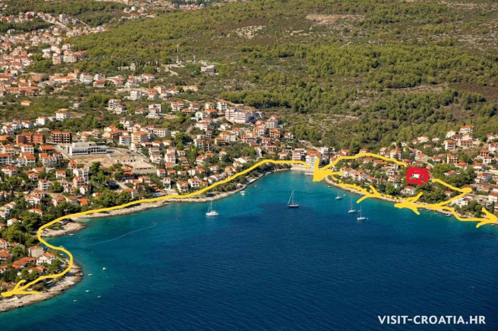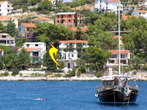 Turistična taksa je vključena v ceno.Brezplačno, internet, klima. parkirišče...Z minimalnimi stroški lahko dobite STORITVE PRALNICE PERILA NA DOMA. Ohranjena narava ob morju ponuja sprehod in osamljene plaže. Plaže so oddaljene 200m, prodnate, skalnate... Možno je kolesarjenje. v bližini je teniško igrišče, 200 m od hiše pa šola potapljanja - potapljaški izleti, možen najem čolnov, skuterjev, , . zabavni vodni park za otroke na lokalni plaži. Trogir, ki je pod Unescovo zaščito, je oddaljen 5 km. LEŽIŠČA v apartmajih: A1 in A2 sta enaka in imata: VEČJO SOBO in 2 sobi z enojno posteljo ter pomožno v DNEVNI SOBI TERASA-BALKON cca 15m. A3 ima SOBO ZA PAR - MALI BALKON, ENO SOBO in 2 ločeni LEŽIŠČI v DNEVNI SOBI - MALI BALKON in ima 2 TUŠ_WC TERASO 12 m, preko katere vstopite v apartma A4 ima SOBO ZA PAR - MALI BALKON, kavč-120. cm širine v dnevni sobi in 2 ločeni LEŽIŠČI v DNEVNI SOBI - MALI BALKON in imata 2 TUŠ_WC TERASO 12m, preko katere se vstopi v stanovanje