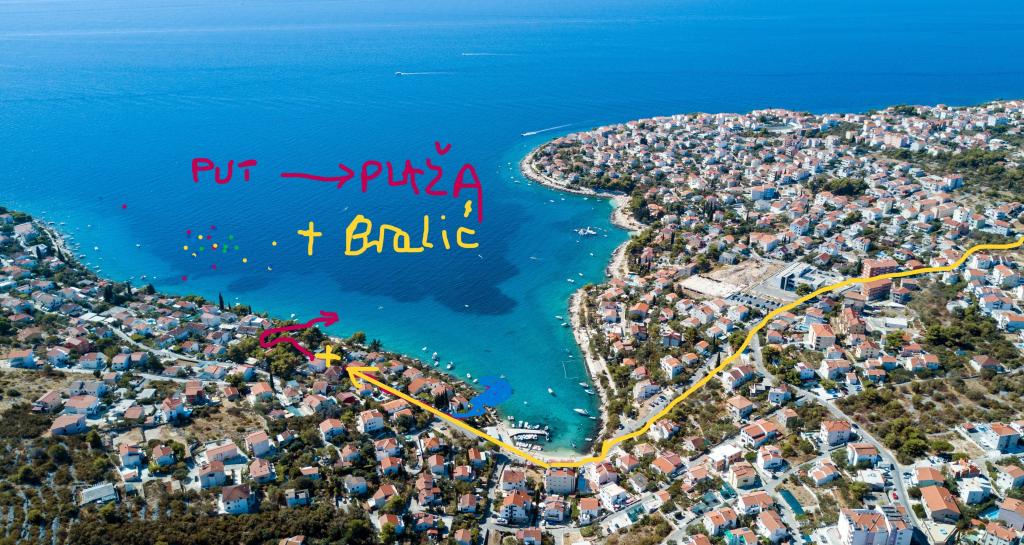 DRUŽINSKI APARTMAJI-Bralić se nahajajo na južni strani ČIOVE s pogledom na otok ŠOLTA, v mirnem predelu zaliva MAVARČICA. Hiša je v drugi vrsti od morja, 30 m od PLAŽE 200 m. VSA stanovanja imajo ločen vhod Z DVORIŠČA HIŠE. Vsak apartma s svojo dnevno sobo in ZAKONSKO SOBO ter njunimi balkoni ima pogled na morje. A1 in A2 imata (eno ZAKONSKO sobo in še 2 sobi z 1 posteljo. A3 in A4 imata ZAKONSKO SOBO, 2 ležišči v DNEVNI SOBI ločeni s Harmo vrati od kuhinje in WC-tuš v bližini ZAKONSKE sobe in WC- Tuš v bližini DVORIŠČA JE ZA 1 OSEBNI AVTOMOBIL ZA GOSTE. Kako do hiše? km po novi cesti za OKRUG GORNJI- Od kavarne MAVARČICA boste videli (na desni) ulico KRALJA KREŠIMIRA in na levi hiša PLAŽA JE KAMNITA NE SPREJEMAMO