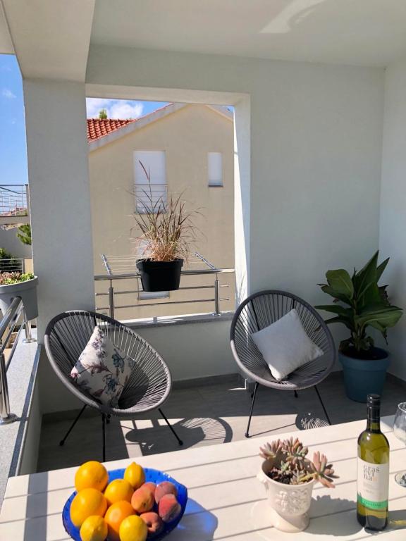 Trenutno smo nastanjeni v stanovanju. Pogled je čudovit. Na balkonu boste, ne glede na uro, našli senco in uživali v čudovitem pogledu na morje. Vsaka fotografija prikazuje dejanski videz stanovanja. To je najboljše stanovanje, na katerem smo bili do zdaj na Hrvaškem. Toplo priporočam. Smo s psom in dvema otrokoma in čudovito je