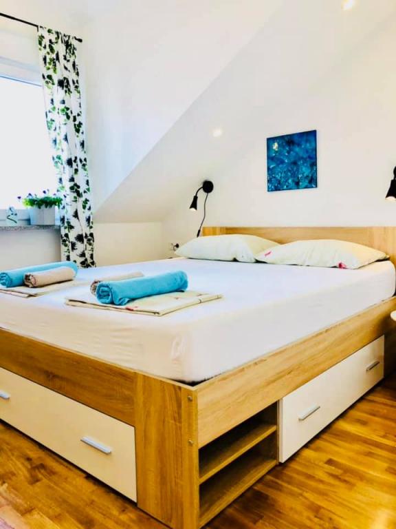 Najeli smo zgornje stanovanje in ne bi mogli biti bolj zadovoljni. Prostor je čist in tam je vse, kar potrebujete. Pogled s terase je neverjeten!!! Tam sta postavljena jedilna miza in bivalni prostor. Zelo udobna postelja, pomivalni stroj, prijeten velik tuš in pralni stroj olajšajo vaše počitnice. Bazen je zelo prijeten, in na tem vrtu so tudi tuš, da se lahko stuširate, preden greste v bazen. 60 metrov od hiše, morje vas pričakuje, čudovito!!! V bližini je minimarket ter več kavarn in prijetnih restavracij. Naredite si uslugo in najemite to res lepo mesto za zelo, zelo dobre počitnice. Darko in Niclas sta najboljša gostitelja, kar si jih lahko želiš. So pozorni, prijazni in vedno na voljo, da vam dajo dobre nasvete o tem, kaj storiti in ne, ko ste na Hrvaškem.