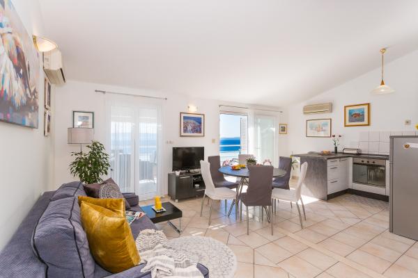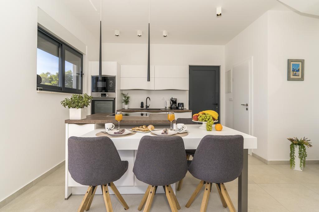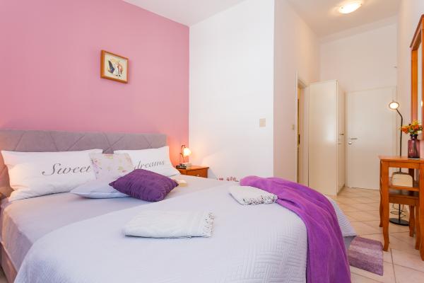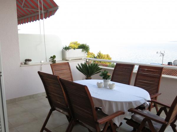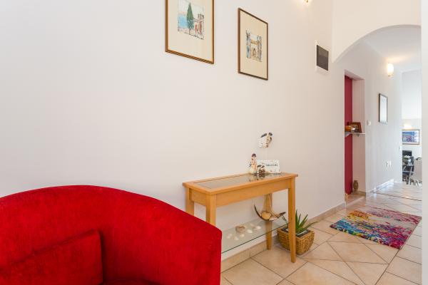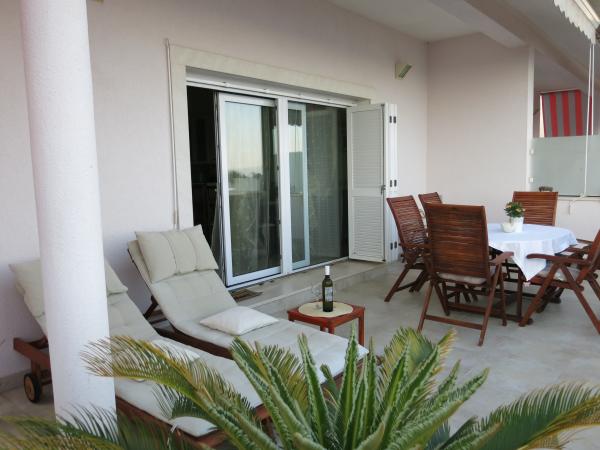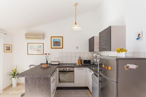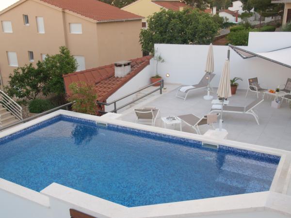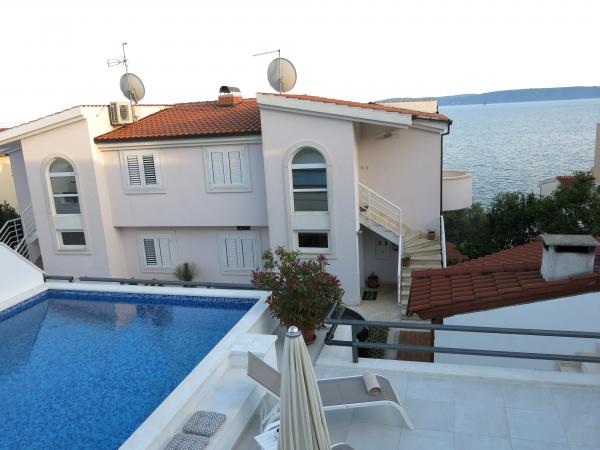 Naša hiša se nahaja na otoku Čiovo, 10 minut vožnje od mesta Trogir in le 15 minut vožnje od najbližjega letališča. Hiša se nahaja na južni strani otoka Čiovo, in tam je majhno mesto in toplo zaliv, ki je na razdalji 30 metrov od hiše. V bližini hiše, na razdalji 50 metrov, je parkirišče. Na 200 metrov je prva trgovina in restavracije. Hiša je sestavljena iz treh etažah. Na vsakem od teh treh je en apartma. Najmanjši, Kyara apartma je primeren za tri osebe. Apartma Petra Kapaciteta je 4 2, medtem ko je stanovanje zmogljivosti Ivana 4 osebe. Vsi trije apartmaji imajo čudovit pogled na morje. Land zasedajo območje vrta, v katerem rastejo limone in mandarine, verando s kamnom, veliki, kamin in bazenom in moderno opremljeno sončenje okoli njega. Bazen je ponoči osvetljena in njegova uporaba je še posebej zaračuna.
