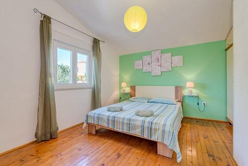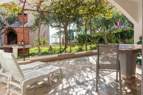 Na novo urejena in popolnoma opremljena počitniška hiša z dvema novima apartmajema. Nahaja se v mirnem predelu Okrug Gornji. Apartmaji se nahajajo na čudoviti lokaciji 2 minuti hoje do plaže, 5-10 minut hoje do restavracij in trgovin, 15 minut hoje do centra, kjer se nahajajo supermarket, banka in bankomat, zdravnik in lekarna, kavarne, turistična pisarna. Vrt z oljkami in urejenim vrtom. Parkirni prostor je na voljo v nepremičnine.