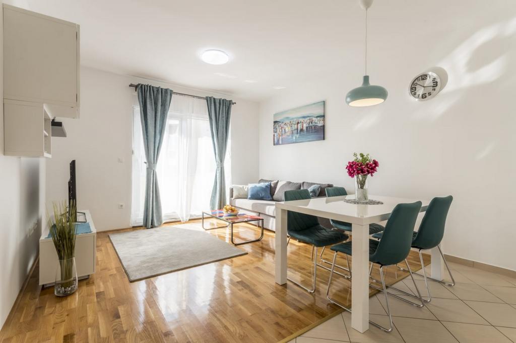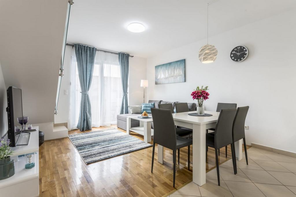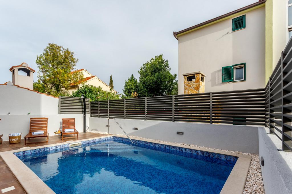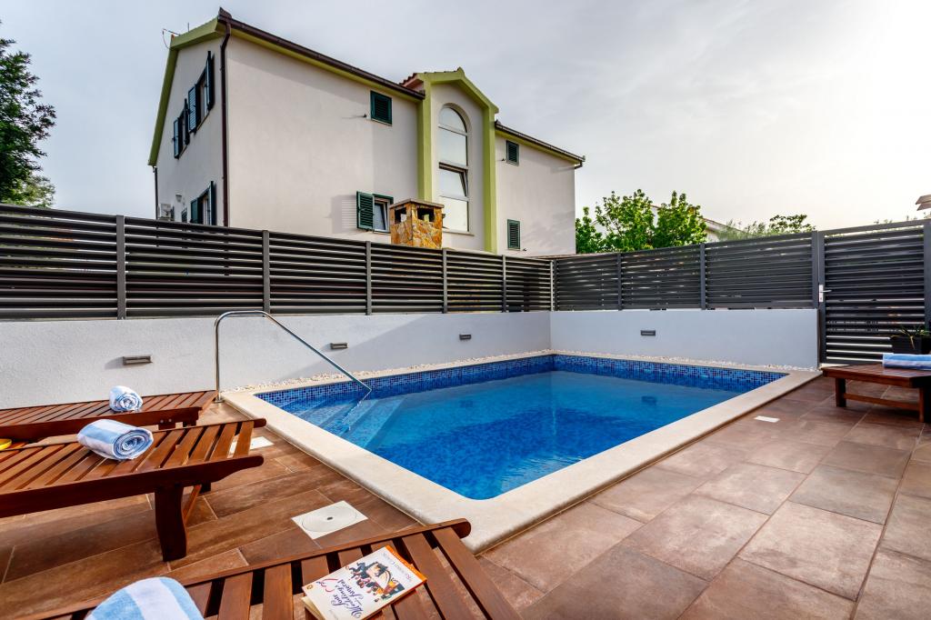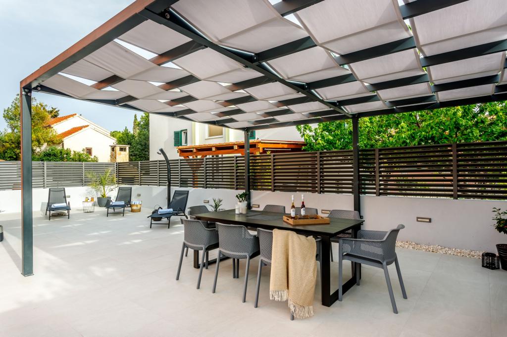 Vila Tango se nahaja v Okrugu Gornjem, blizu Trogirja, v regiji Srednja Dalmacija in je od morja oddaljena 100m, od centra pa 500m. Velikost vile: 240 m2. Vila ima zasebni bazen in jacuzzi z ležalniki za brezskrbno uživanje na soncu. Gostom je na voljo žar in terasa z jedilno mizo. Vila je opremljena s kuhinjo, 8 spalnicami z velikimi ležišči za dve osebi in tremi dnevnimi sobami s kavč ležišči za dve osebi. Vila ima štiri kopalnice. Cena vključuje 2 električna skuterja. Parkiranje je brezplačno.