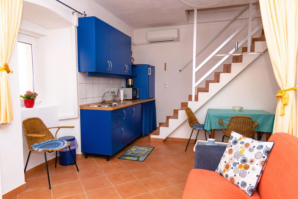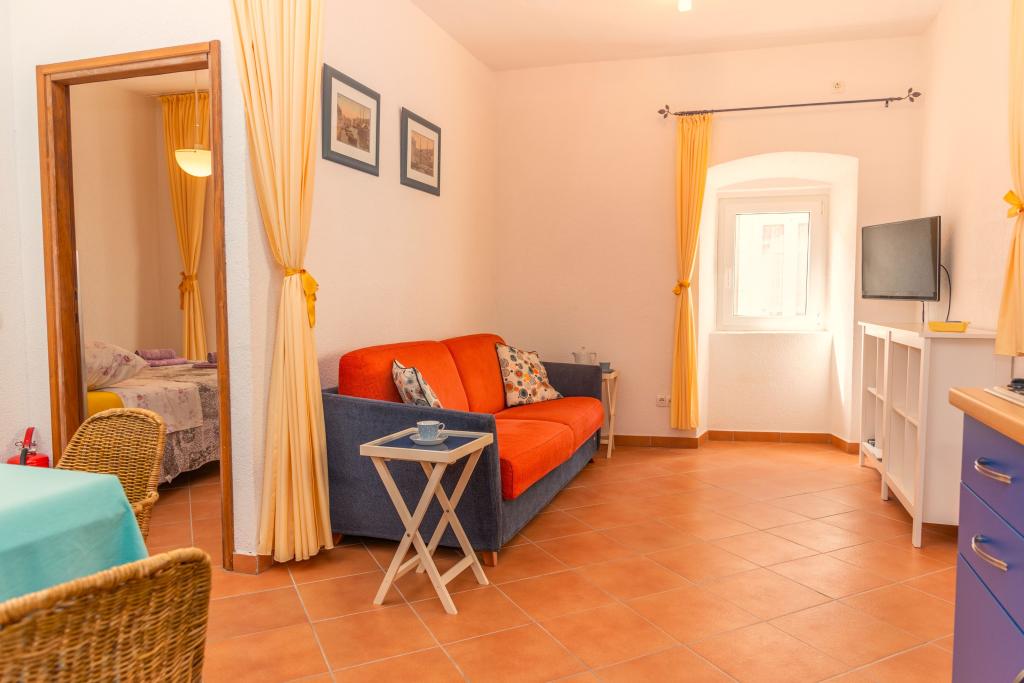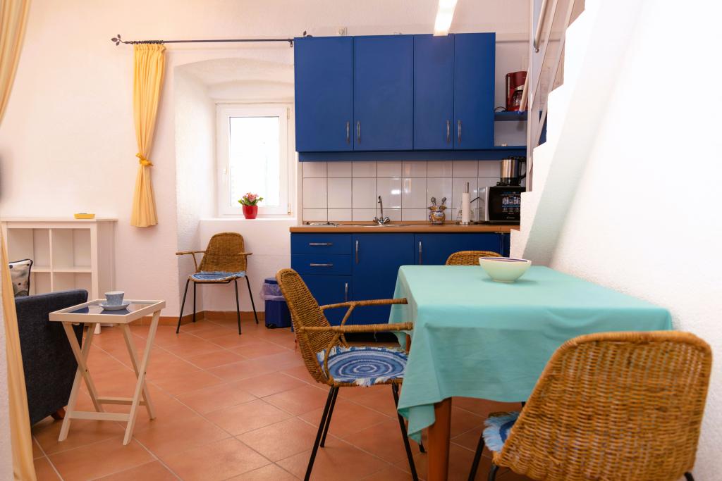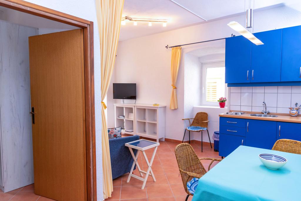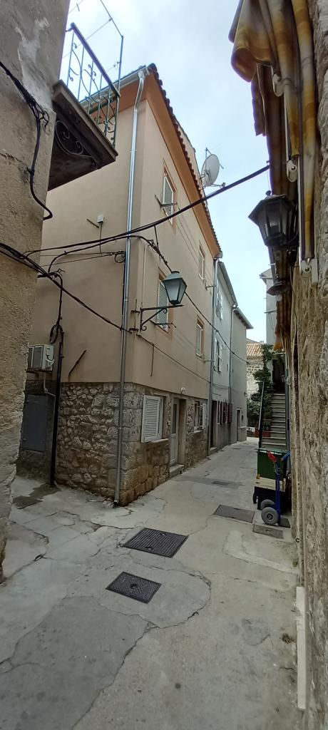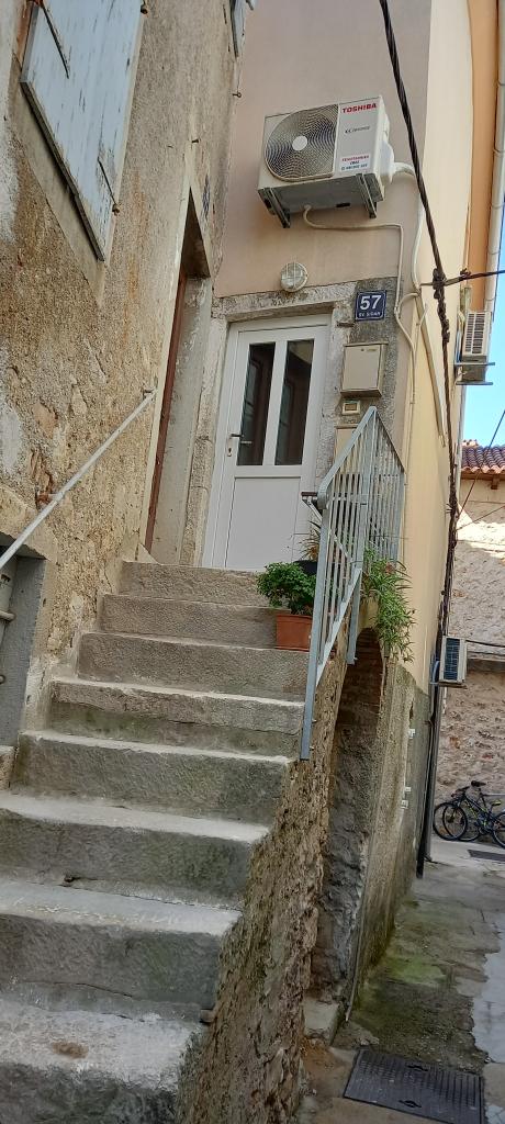 Studio apartma z ločeno spalnico v zgodovinskem središču Cresa, nekaj korakov od glavnega trga in rive. Nahaja se v manjši hiši v drugem (zadnjem) nadstropju. Ima 31 m2 in je sestavljen iz spalnice, kopalnice, manjše kuhinje in dnevne sobe. Studio apartma se nahaja v središču starega mestnega jedra, v bližini glavnega trga in pristanišča Cres. Prva prodnata plaža je oddaljena 10 minut hoje. Trgovine, restavracije in kavarne so v bližini, 2-3 minute hoje. Na voljo sta brezplačen WI-FI in javno parkirišče.