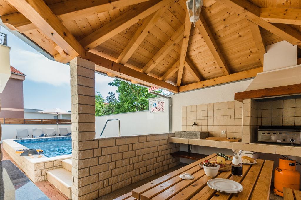 Popolnoma in moderno opremljen apartma v mirnem delu znanega letovišča Crikvenica. Apartma ima veliko pokrito teraso in žar za prijetna druženja. Gostje se lahko sprostijo v velikem bazenu (7mx3m), ki je namenjen samo njim. Stanovanje ima dve spalnici, kopalnico z wc-jem, dnevno sobo, jedilnico, kuhinjo.