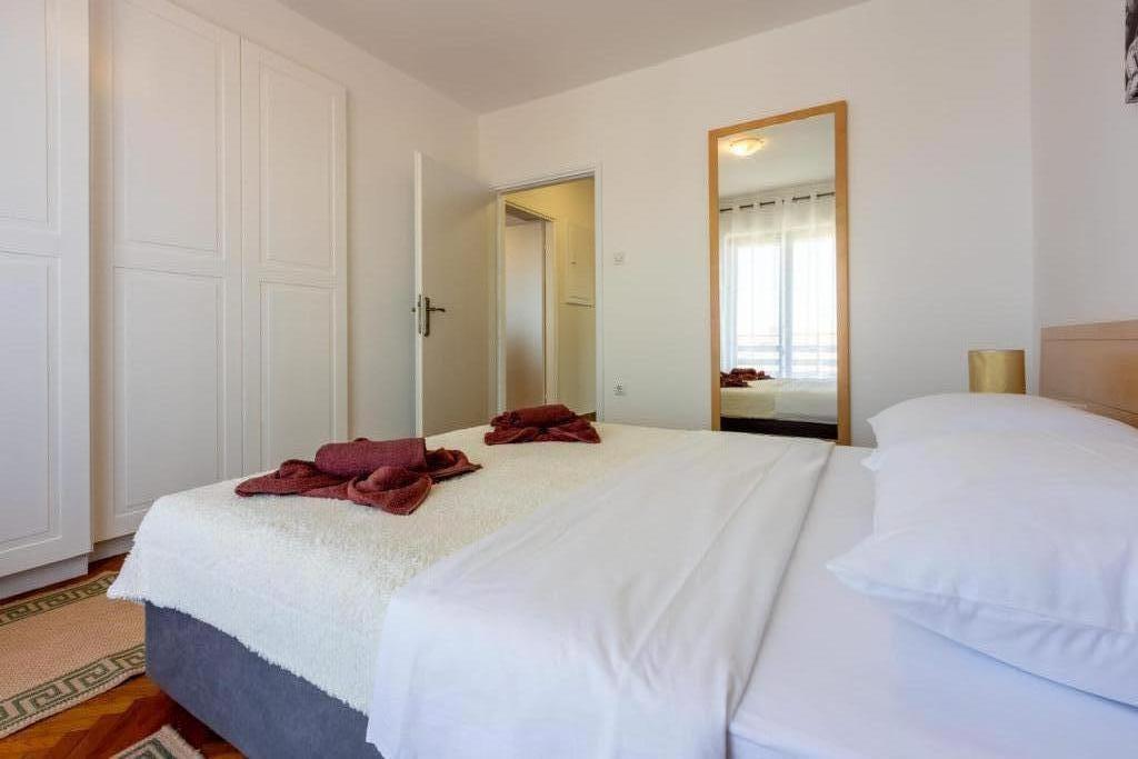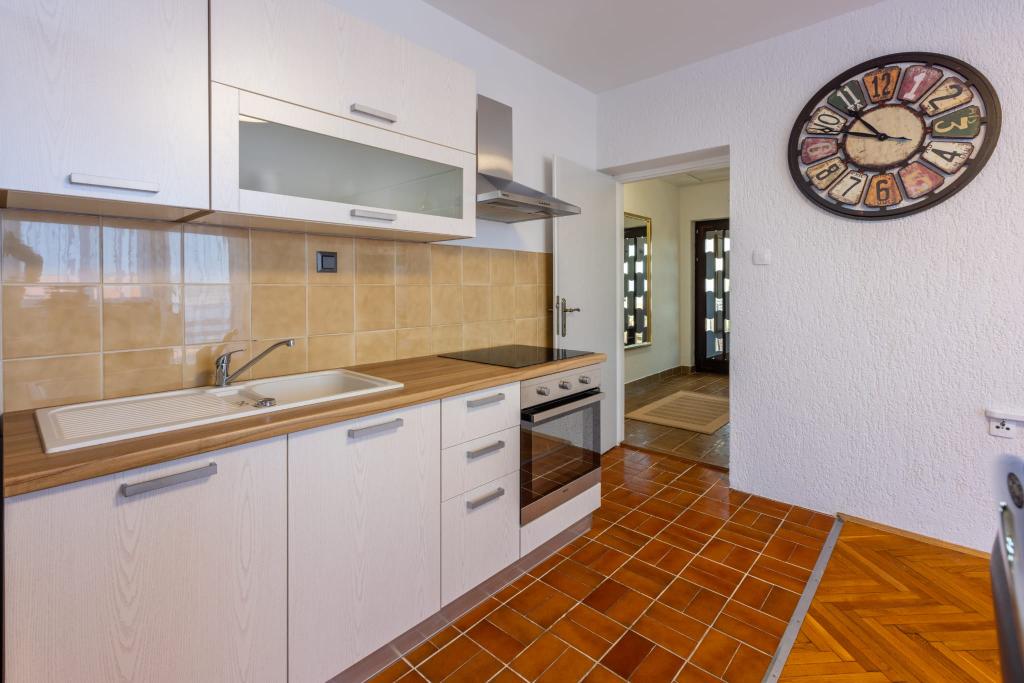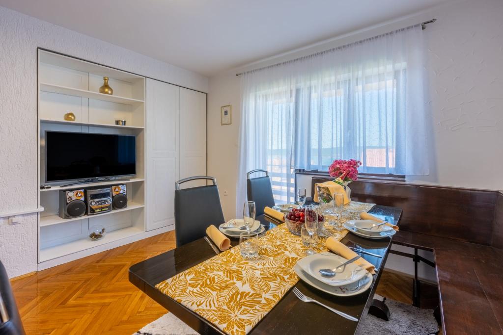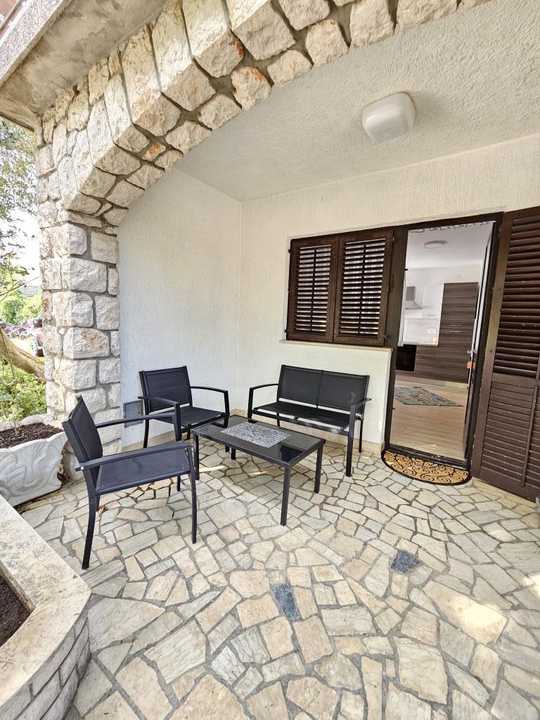 Popolnoma opremljen apartma se nahaja v mirnem predelu Crikvenice. Objekt se nahaja 10 minut hoje od centra in 10 minut hoje od plaže. S terase apartmaja se odpira čudovit pogled na Kvarner in otoke. Stanovanje je ločeno z ločenim vhodom in ima lastno parkirišče.