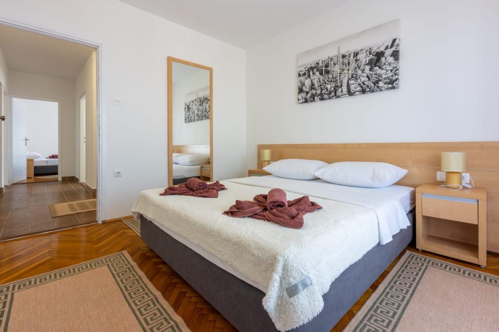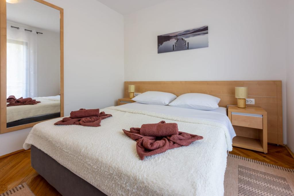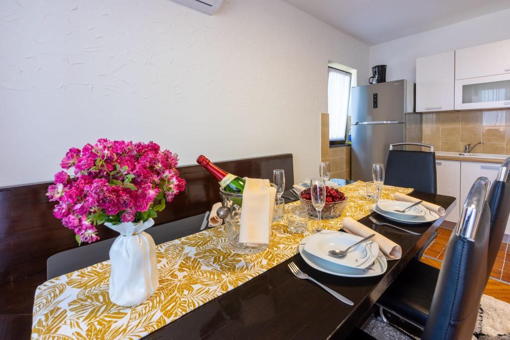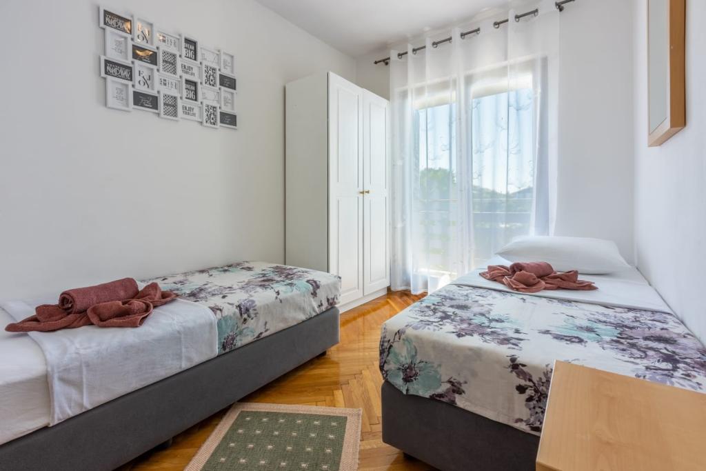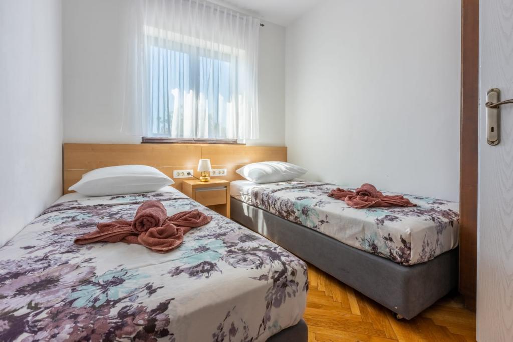 Popolnoma opremljen apartma se nahaja v mirnem predelu Crikvenice. Objekt se nahaja 10 minut hoje od centra in 10 minut hoje od plaže. S terase apartmaja se odpira čudovit pogled na Kvarner in otoke. Stanovanje je ločeno z ločenim vhodom in ima lastno parkirišče.