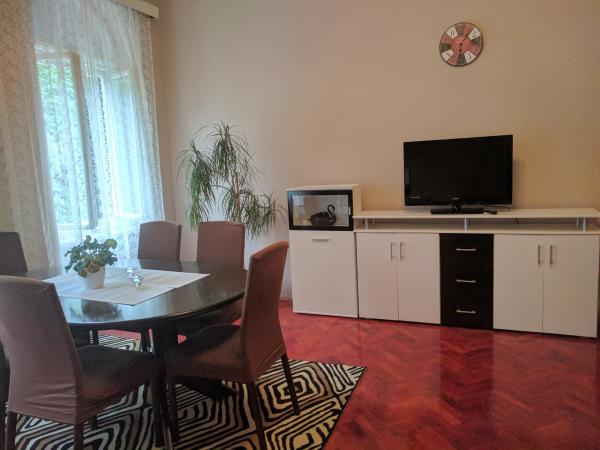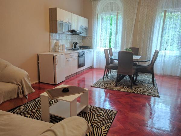 Stanovanje se nahaja v 2. nadstropju hiše, ki je v centru Crikvenice, prvi vrsti do morja. Apartma je 80 kvadratnih metrov. Plaža je 30m od apartmaja. Sestoji iz hodnika, dve spalnici z balkonom, kopalnico, kuhinjo in dnevno sobo. V obeh spalnici je zakonska postelja v apartmaju 4 osebe. Kavč v dnevni sobi se lahko raztegne in je lahko spal 2 osebi. Možno je, da sprejme 6-7 oseb. (Možna uporaba dodatnega ležišča).