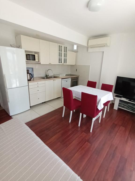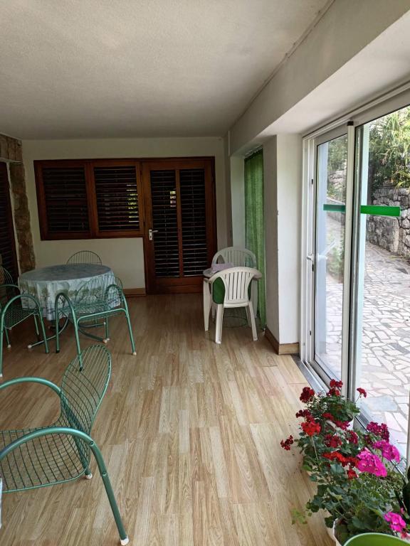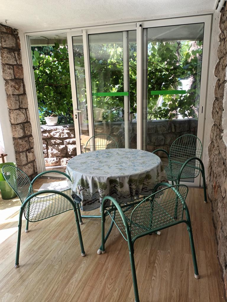 Crikvenica, blizu centra, pet minut hoje do plaže, deset minut hoje do tržnice, avtobusne postaje in glavnega trga. Pogled na zelenje iz prvega nadstropja in morje. Parkiranje je možno na našem parkirišču ob hiši, na dvorišču ali na ulici ob ograji.