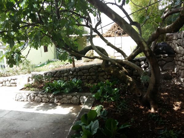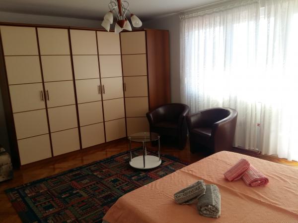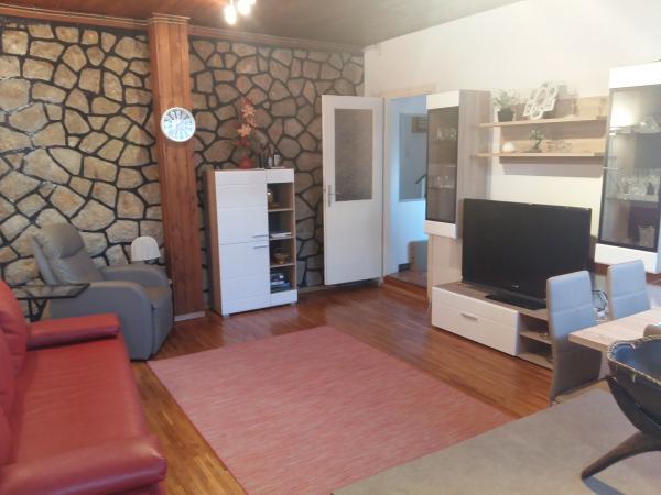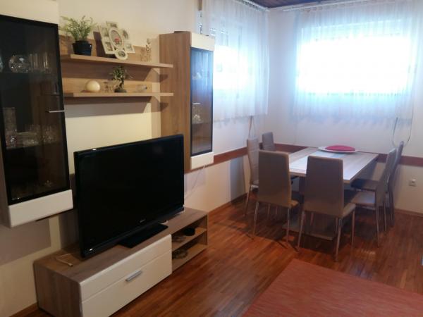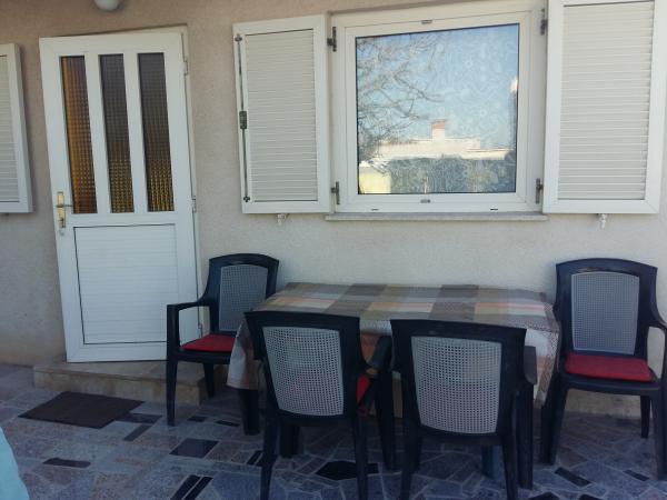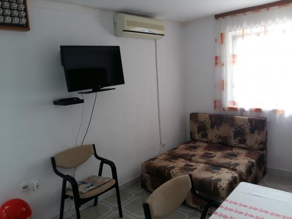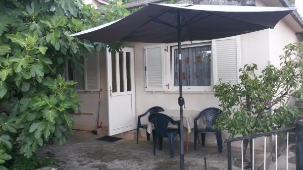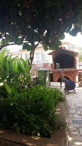 Udobno stanovanje 4 1 v družinski hiši, pet minut hoje od plaže, z ločenim vhodom. Sestavljajo ga predprostor in veliko dnevno sobo z jedilnico in kuhinjo (30 m2), v pritličju in nadstropju sta dve spalnici - tri in dve ležišči in kopalnico. Dvoposteljna soba ima velik balkon. V sobi sta dve klimatske naprave - eno v dnevni sobi, še v veliko spalnico. V kopalnici je pralni stroj. Stanovanje ima pokrit del v senci dvorišče s prostorom za sedenje. Kuhinja je opremljena z napravami (hladilnik, kombiniran električno / plinski štedilnik, el. Pečica, mikrovalovna pečica, kavni avtomat, kuhalnik vode, opekač kruha) in vse za kuhanje. Lepo bungalov 2 1, 35 m2, ločen od glavne hiše. Sestoji iz kuhinje z jedilnico in dodatnim ležaemj za eno osebo, spalnica z zakonsko posteljo, kopalnico in teraso s pogledom na morje. Opremljen s klimatsko napravo in pralnim strojem.