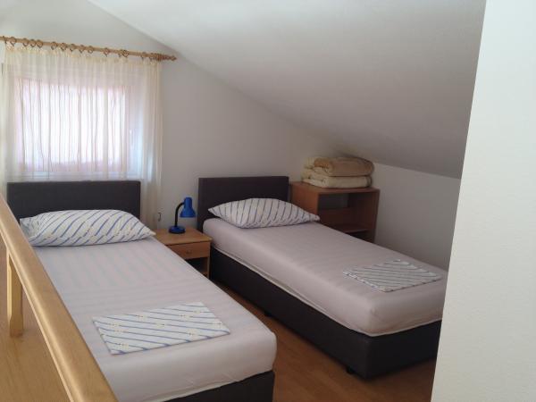 Udobno in praktično opremljeni apartmaji se nahajajo v mestu, ki je znan po peščenih plažah in milega podnebja. Še posebej zanimiv del apartmaja je sestavljen iz galerij, ki se nahajajo nad dnevne sobe, ki so jih dosegli s stopnicami, kjer je prav tako postavila spalni prostor. Minimalna višina strehe je 120 cm v galerijah. Oba apartmaja imata zasebno parkirišče. Oba apartmaja nudita čudovit pogled centra Crikvenice in Kvarnerju. Veselimo se srečanja z vami.
