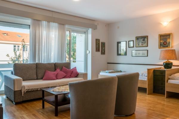 NINA Apartmaji se nahajajo v mirnem območju, ki se nahaja v bližini plaže, 10 minut hoje od centra mesta. Imajo 3 enote. Parkirišče je na dvorišču. Na dvorišču je igrišče za otroke in žar.
