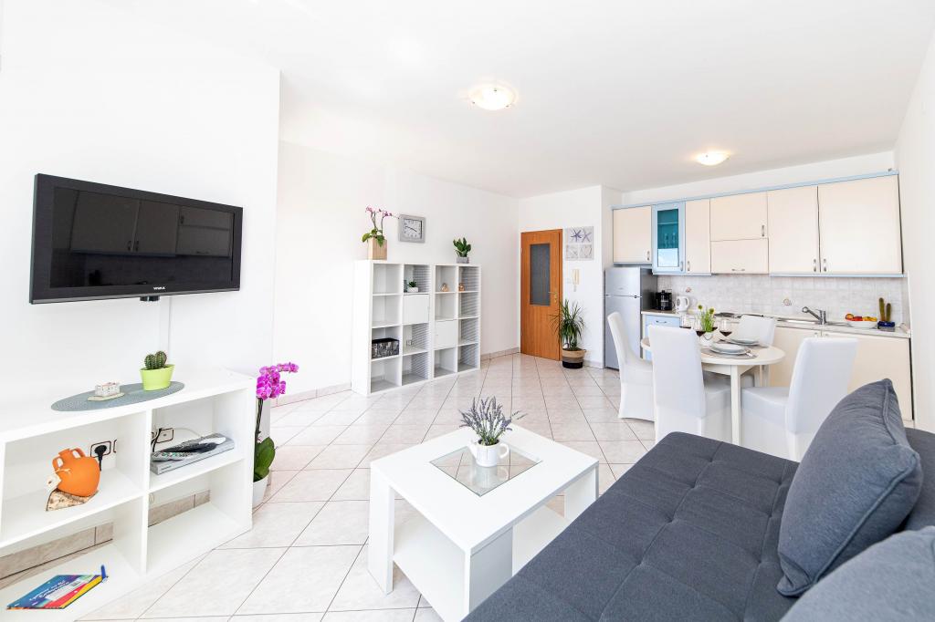 Vse čisto in urejeno, domačinka prijazna, plaža blizu, trgovine blizu, sprehod ni problem, apartma je v živo še lepši kot na slikah, prostoren in ima vse, kar potrebujete za počitnice.
