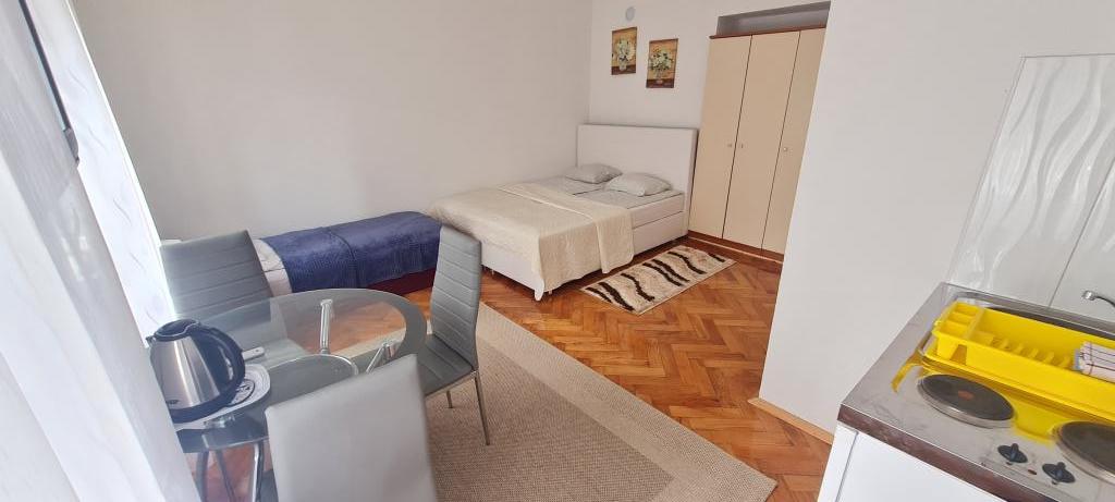 To oceno pišem, da opozorim druge, ki nameravajo preživeti počitnice tukaj. Lokacija apartmaja je res blizu centra, plaže in trgovin. Apartma je čist in urejen. Lani smo bivali v spodnjem apartmaju in vse je bilo v redu, razen postelje, do katere je bilo mogoče dostopati po stopnicah in si moral paziti, da si pri vstajanju ne udariš z glavo. Ker je bila to naša edina pomanjkljivost in smo pozno začeli iskati nastanitev, smo gospo ponovno poklicali in povprašali po zgornjem apartmaju. Čeprav je cena na spletni strani 90 € na noč, je gospa rekla, da se lahko pogajamo za 75 €, s čimer smo se strinjali. V apartmaju je ob vhodu jasno naveden cenik iz letošnjega leta, kjer je cena za dve osebi 70 € na noč za isto stanovanje. Nočitev za tri osebe stane 90 €. Ta cenik ni prikazan na spletu in ga ob najemu ne boste videli. Zadnji dve noči se nam je pridružila še tretja oseba, na kar je gospa rekla, da ni problema, a nam je zadnji dan vseeno zaračunala dodatnih 40 €. Po ceniku bi nas moralo 7-dnevno bivanje v apartmaju stati 530 €, gospa pa nam je zaračunala 565 €. Za klimatsko napravo so doplačali 5 € na dan, kot je navedeno v ceniku, vendar brez nje res nismo mogli živeti. Skupaj smo za 7 nočitev plačali 600 €. Soba je res majhna, še posebej kopalnica, studio pa vsekakor ni vreden denarja (skoraj 86 € na dan). Največja težava je bila, da ljudje pridejo na morje, da bi se sprostili, ampak gospa tega očitno ne razume. Nekega jutra je potrkala na vrata sobe in pripeljala gosta, ki je bival v sobi spodaj, da bi prišel pogledat našo. Moram omeniti, da sem takrat še spal. Vsak dan je gospa pripomnila, da spim predolgo. Ker gospa živi v isti hiši kot sobe, ni pravega miru. Njen mobilni telefon je nastavljen na polno, nenehno hodi mimo sobe, se pogovarja z družino itd. Pri ceni 86 evrov na noč resnično pričakujem svoj mir in ne bom moral nenehno "čakati", da gospa pride v mojo sobo. Poleg tega je lani preprosto vstopila v sobo, ne da bi potrkala. Parkirišče ni pred hišo, ampak nekje višje, vendar avtomobila nismo uporabljali, zato nas to ni motilo. Žal nobene od teh namestitev ne priporočam za bivanje, daljše od ene/dveh noči.