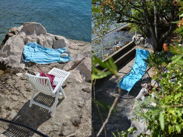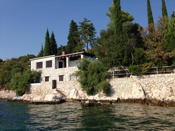 Kamnita hiša v celoti obnovljena leži na obali. Zasnovan je tako, da sprejme 6 do 8 ljudi. V pritličju se nahaja kuhinja, dnevna soba, jedilnica, spalnica z dvema ločenima ležiščema in kopalnico. V prvem nadstropju sta dve spalnici in kupaonica.Tri terase, ena pokrita ponujajo osupljiv pogled na morje in otok Krk. Objekt je obdan z mediteranskim vrtom. Parkirišče za dva avtomobila na dvorišču. Gostom so na voljo uporaba žara in priveza, ki se nahaja pred hišo.