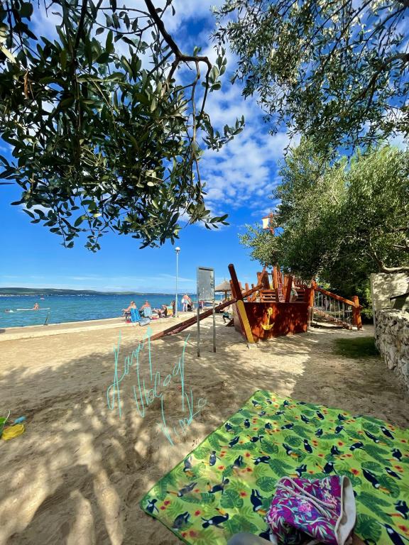 Apartma v Dobropoljani le 150 metrov od peščene prodnate plaže, ki je primerna za otroke in starejše. Stanovanje ima tri spalnice, veliko kuhinjo, balkon in eno kopalnico. Nudimo dostop do interneta in klimatsko napravo. Za hišo je dimnik, ki ga lahko prosto uporabljate. V Dobropoljani lahko uživate na čudoviti dolgi plaži, ki ponuja tudi otroške aktivnosti s toboganov, lesenih čolnov na peskovniku za igro in gugalnic, preživite čas v kavarnah na obali ali obiščete staro vas Dobropoljane. Gostitelji vam bodo na voljo za vse, kar potrebujete. Poleg stare vasice, ki je od apartmaja oddaljena le 10 minut hoje, vodi cesta do najvišjega vrha otoka Pašmana, od koder se ponuja impresiven razgled na otoke zadarskega arhipelaga. Otok Pašman je bogat s kolesarskimi in pohodniškimi potmi, Dobropoljana pa je idealno izhodišče za raziskovanje teh poti. Dobropoljana je tudi odlično izhodišče za obisk različnih znamenitosti na Pašmanu in Ugljanu