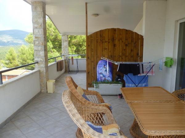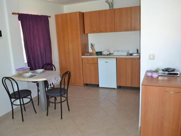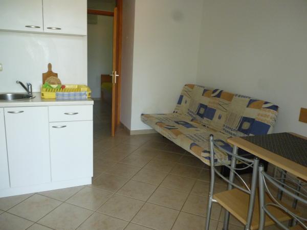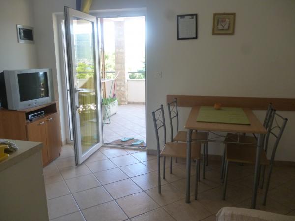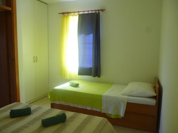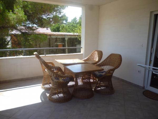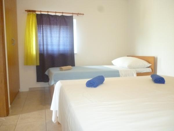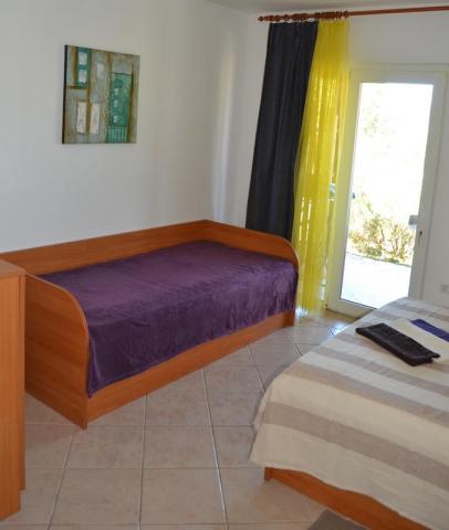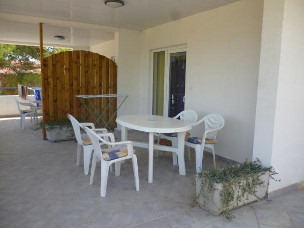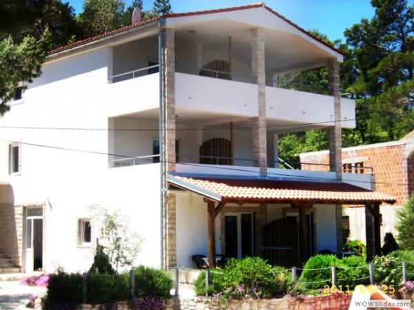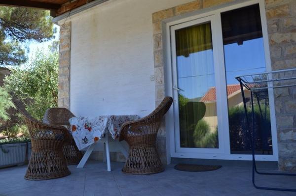 Popolnoma opremljeno stanovanje v mirnem delu Karin zalivu, obdan s prekrasnim borovim gozdom. Objekt se nahaja v slepi ulici (brez prometa), po stopnicah dol na plažo. Vsak apartma ima svojo teraso, štiri nad lepo morje.