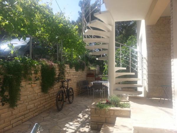 Donji Karin se nahaja v borovem gozdu s panoramskim pogledom na park. Donji Karin je obkrožena s štirimi nacionalnih parkov (Kornati, Paklenica, Krka in Velebit) in več naravnih parkov (Zrmanj, Karišnica). Tudi območje je bogato z arheološkimi najdišči, kot je staro mestno jedro Asseria iz rimskih časov, stolpa in khans Otomanskega cesarstva. V poletnih številnih kulturnih in umetniških dogodkov v okolju (prisnac, nočni ribolov, koncerti, itd). Gostje imajo možnost stanovanj, ki ležijo na treh morjih (Karin, Novigradsko in the Adriatic), uživajo sredozemsko podnebje in cvrlikanje ptic. Popolnoma opremljeni in moderni apartmaji v mirnem predelu spodnjega Karina so bili dani v tretji vrsti do morja. Gostje imajo možnost uporabe zunanjih naprav, kot so piknik in uživajte lokalne specialitete kuhanje na ražnju. Objekt se nahaja 3 minute hoje do plaže in restavracije in 5 minut hoje do trgovin.