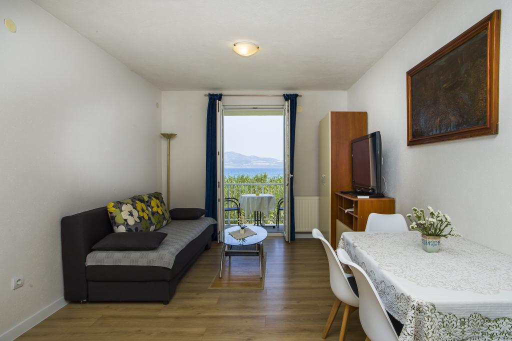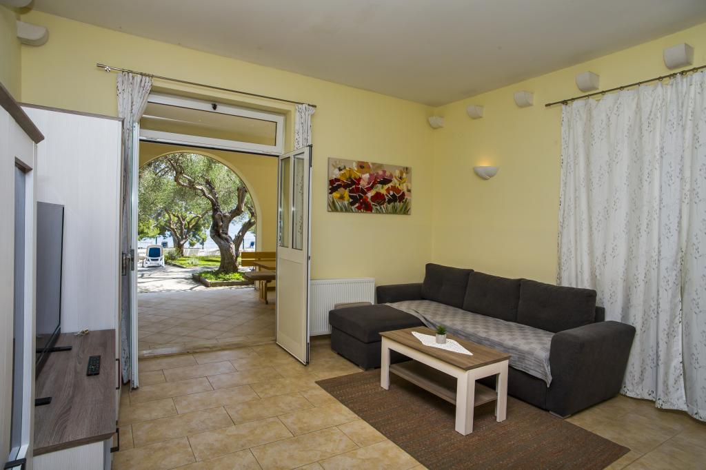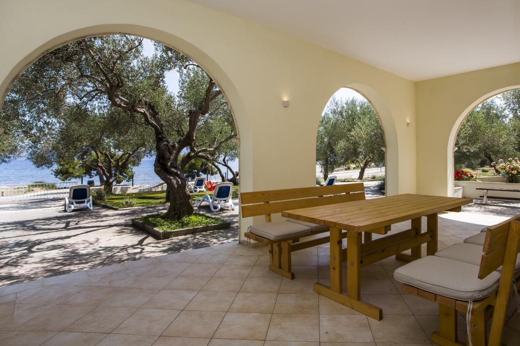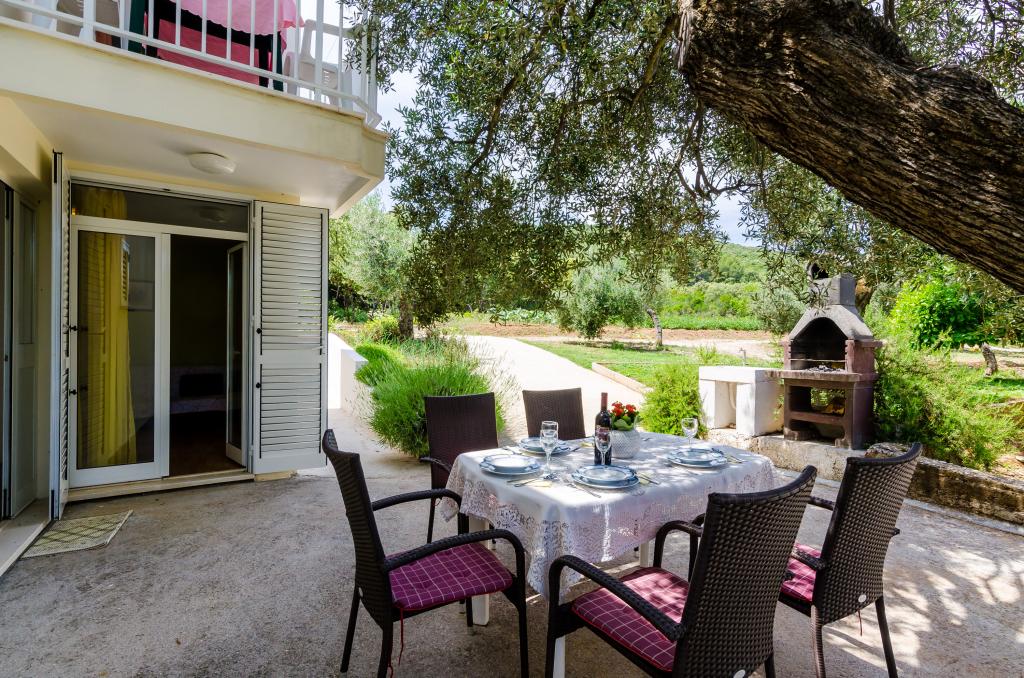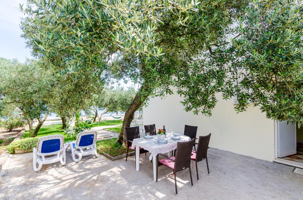 Hiša je oddaljena 20 metrov od prodnate plaže z drobnim peskom v morju. Od vasi Drače (80 km od Dubrovnika) je oddaljena 500 metrov in se nahaja v velikem oljčnem nasadu (6000 m2). V pritličju so trije apartmaji, v prvem nadstropju pa en apartma. Gostom je na voljo brezplačen WiFi in dva žara (velik skupni žar in majhen ločen žar za apartma A1). Parkirišče je zagotovljeno za vsa vozila. Vsi apartmaji imajo pralni stroj. VSI APARTMAJI SO KLIMATIZIRANI.