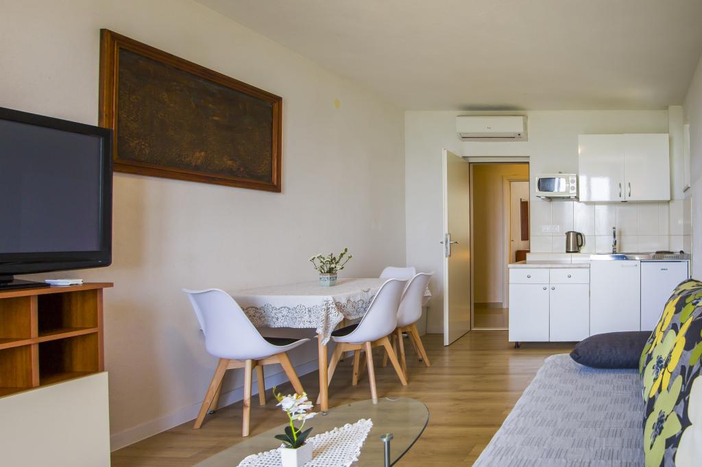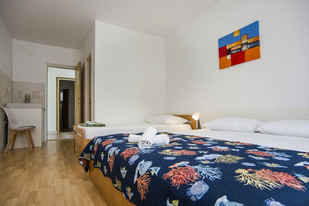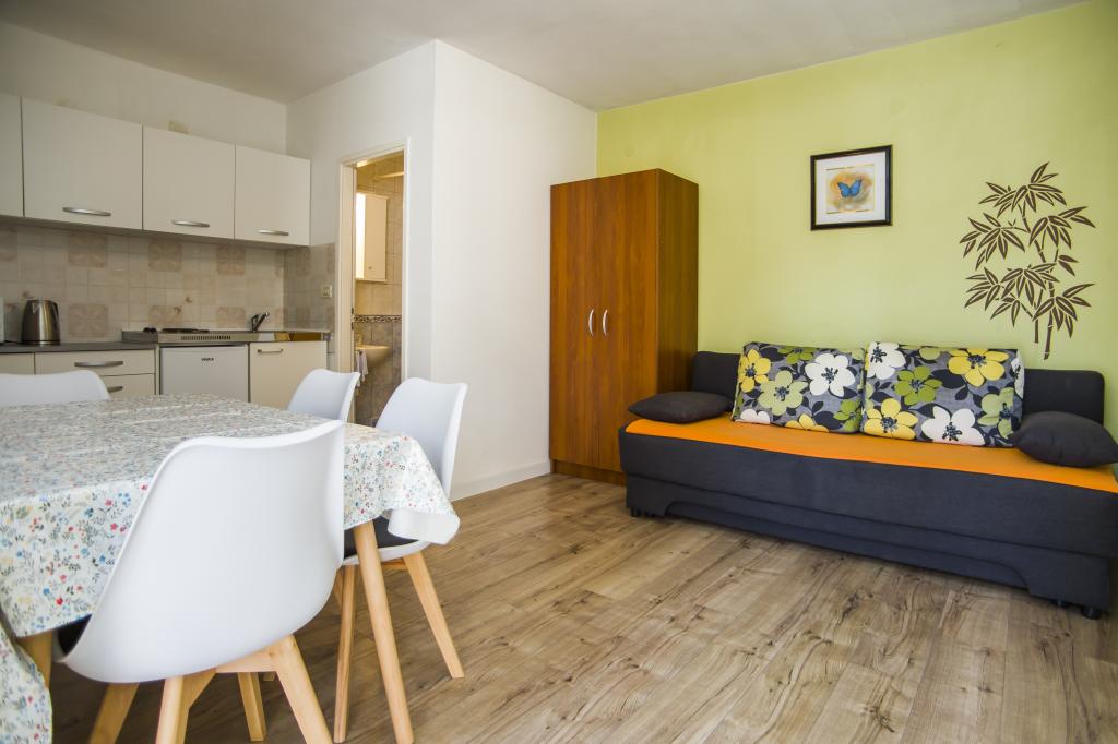 Bivali smo v apartmaju studio + 2 v pritličju. Stanovanje je res veliko, urejeno in terasa je super. Bližina plaže 10 korakov, lep vrt. Bili smo navdušeni. Lastniki so izjemno prijazni ljudje. Celoten teden bivanja je bil popoln.
