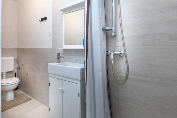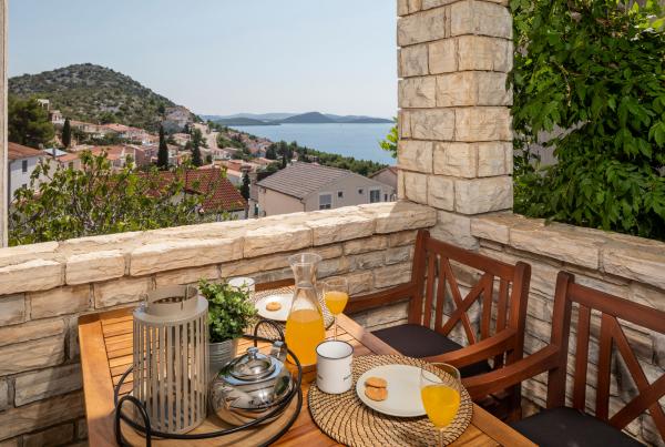Sama hiša je fantastična. Kamen, obdan z oljkami, lovorjem, figami in cvetjem. Ima kotiček z žarom, medtem ko se celo kokoši skrivajo v zadnjem delu hiše. Apartma ima čudovit razgled in vse kar potrebujete za prijeten dopust. Prijazen gostitelj. Do plaže najhitreje pridete po stopnicah. Dve ali tri minute in ste na plaži. Je malo bolj navkreber. Na plaži se vedno najde kotiček v senci. V bližini je pekarna in manjša tržnica. Na počitnicah smo se imeli super.