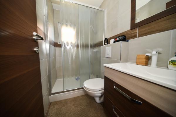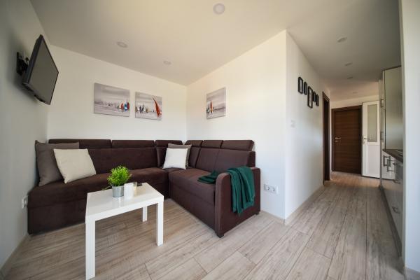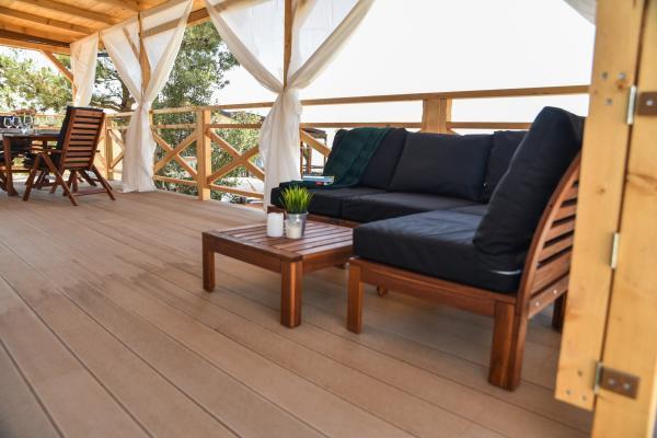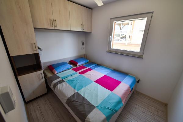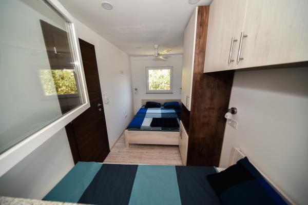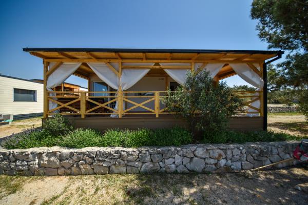 AKCIJA 45 EUR Mobilna hiša je povsem nov mobilni dom, izdelan leta 2018, izjemno modernega dizajna, ki ga bomo prvič najeli v tej sezoni. Znotraj 36m² se nahajajo 2 spalnici, 1 kopalnica s tušem, kuhinja, jedilnica in dnevna soba. V hiši lahko sprejme 5 odraslih. Ena soba ima zakonsko posteljo, v kateri je tudi novi Samsung 32-kanalni satelitsko televizijo, druga pa ima zakonsko posteljo in eno posteljo. Obe sobi imata vgrajene stropne ventilatorje. Vsa okna imajo vgrajene mreže proti komarjem. Kuhinja je opremljena s steklokeramično kuhalno ploščo, napa, 180l hladilnik (ločen hladilnik iz zamrzovalnika), mikrovalovno pečico, kotliček in vse pripomočke za kuhanje in postrežbo hrane in pijače. V dnevni sobi je novi Samsung 32 \\\\\\\\\\\\\\ 'LCD satelitsko televizijo in invertersko klimatsko napravo. Super hiter internet. Osrednjo sobo dopolnjuje lesena terasa 27 m².