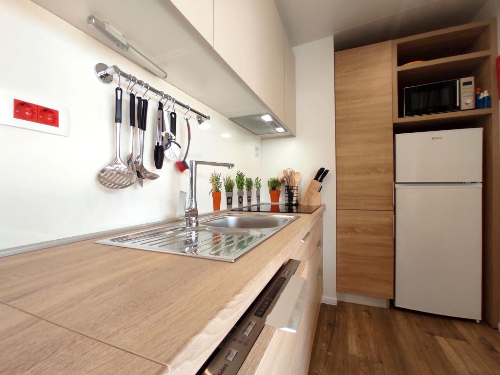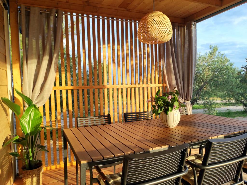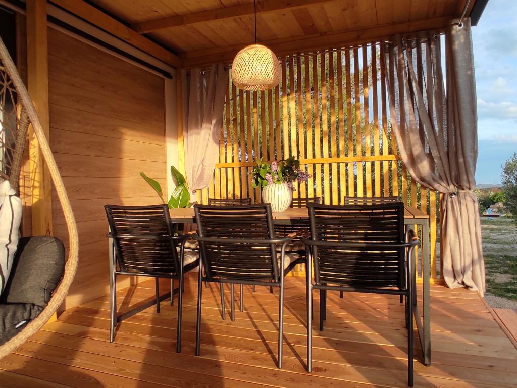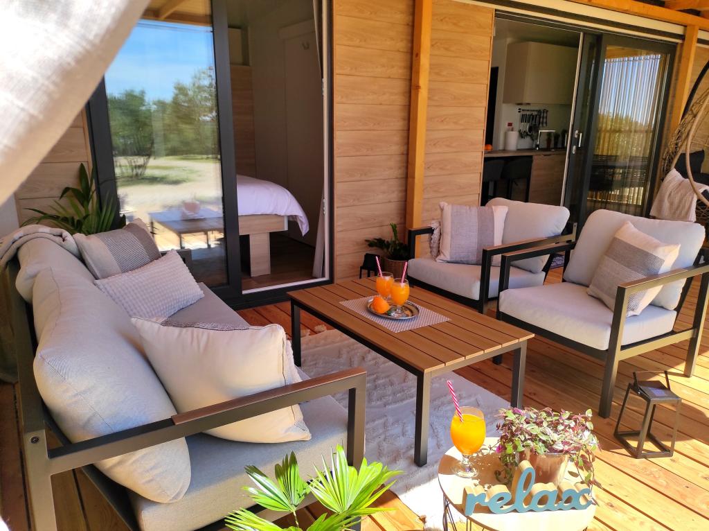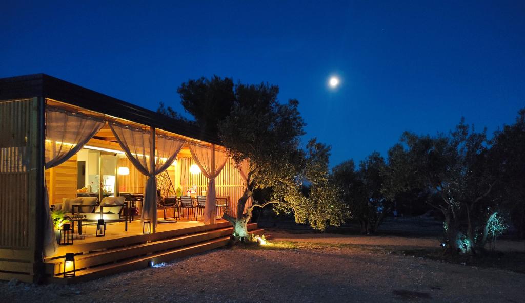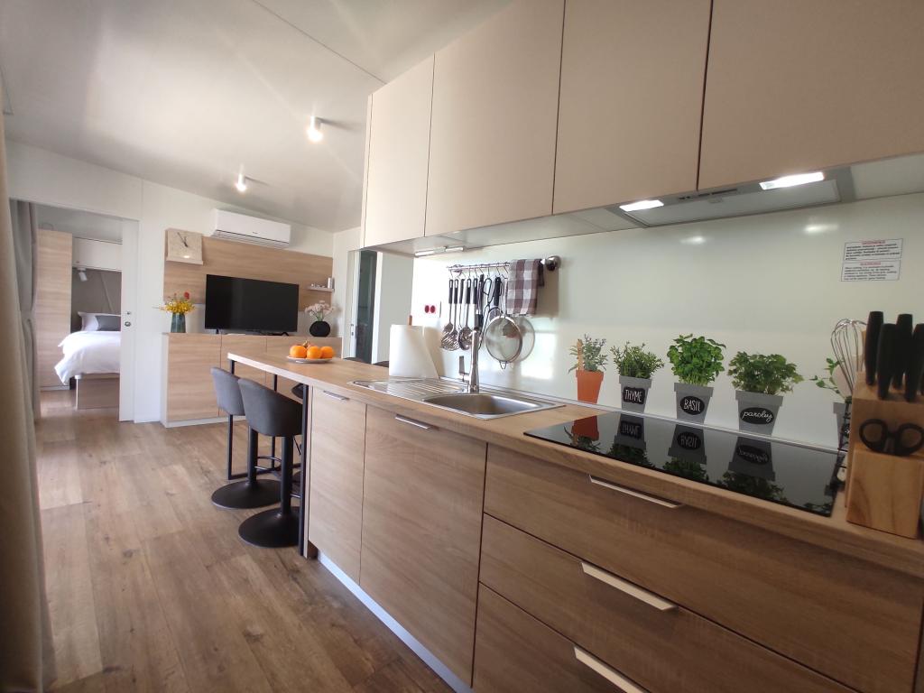 Mobilna hiška Zen Zone Premium je moderno urejena hiša, popolnoma opremljena z aparati in vsem, kar potrebujete za sprostitev in uživanje v težko pričakovanem dopustu. Skupaj s teraso ima hiša skupno površino 65 m2 in prostoren vrt za uživanje na počitnicah. Pitje jutranje kave na prostorni zunanji terasi ob žvrgolenju ptic in vonju narave, ki vam jo prinaša morski vetrič, se zdi idealen začetek dneva. Ko se želite osvežiti v morju, ste od plaže oddaljeni le 150 metrov. Če se odločite za bivanje v senci terase, v tišini prebirate dobro knjigo ali se samo hladite z brezplačnim WiFi-jem, gledate televizijo ali samo zadremate, smo poskrbeli, da boste to dobili v mobilni hiški Zen Zone. Ko vam ni do kuhanja obrokov v kuhinji, smo vam priskrbeli velik žar in električno pečico za preprosto, a raznoliko pripravo okusnih jedi. Hiša je namenjena celotni družini, družbi prijateljev in vsem, ki si želijo dobrega počitka, sprostitve in uživanja v miru čiste narave.