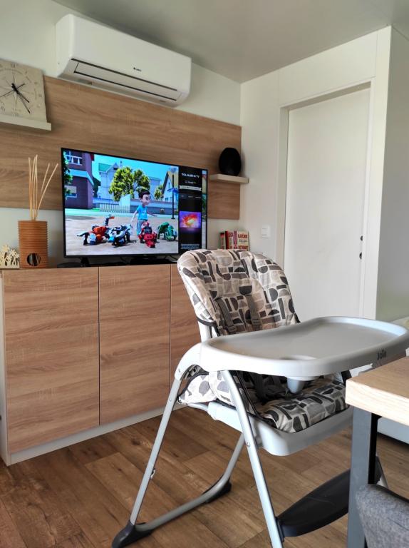 Odlična in skladno urejena mobilna hiška. Vsaka podrobnost je zelo dobro premišljena. Vrhunsko opremljen za bivanje več oseb. Plaža je zelo blizu nepremičnine. Terasa je temna!