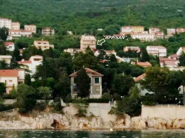 Apartmaji San se nahajajo v Dramalj, v bližini Crikvenice. V hiši so trije apartmaji z lepim pogledom na morje, na otoku Krku in celoten Kvarner. Vsak apartma ima veliko teraso, pokrito z prostor s sedeži. Parkirišče je brezplačno in se nahaja neposredno na nepremičnine. Apartmaji se nahajajo približno 200 metrov od morja. Na dvorišču je žar, in je na voljo vsem gostom.