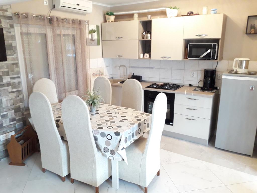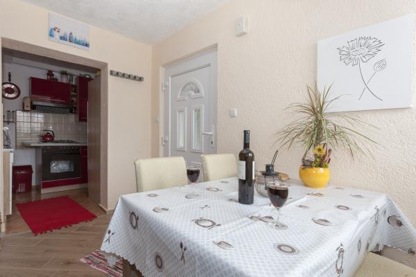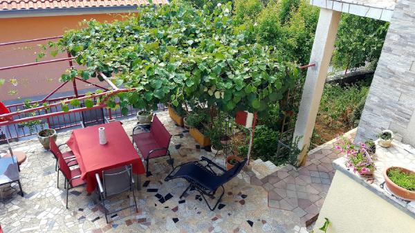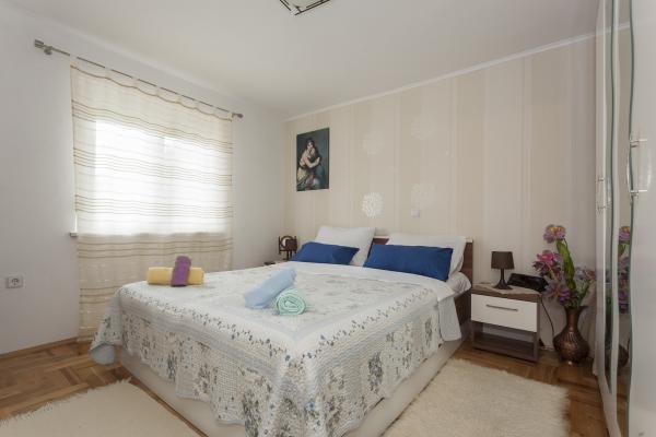Apartma se nahaja v mirnem kraju in imate približno 10-15 minut peš do morja. V apartmaju imate 2 dobro opremljene sobe z zakonsko posteljo in garderobami. Imate tudi kopalnico z velikim prho, friz, ogledalo itd. V kuhinji je bilo veliko pripomočkov, tako da lahko kuhate vse, kar želite. Imeli smo tudi prostor z mizo na terasi s pogledom na morje. Gostitelji Jasnica in njen mož sta bila zelo prijazna in sodelovala. V hiši živi zelo ljubek mali psi Maki. Tako smo se zahvalni Jasnici za dobro namestitev in nekaj dobrih nasvetov.