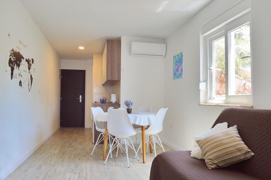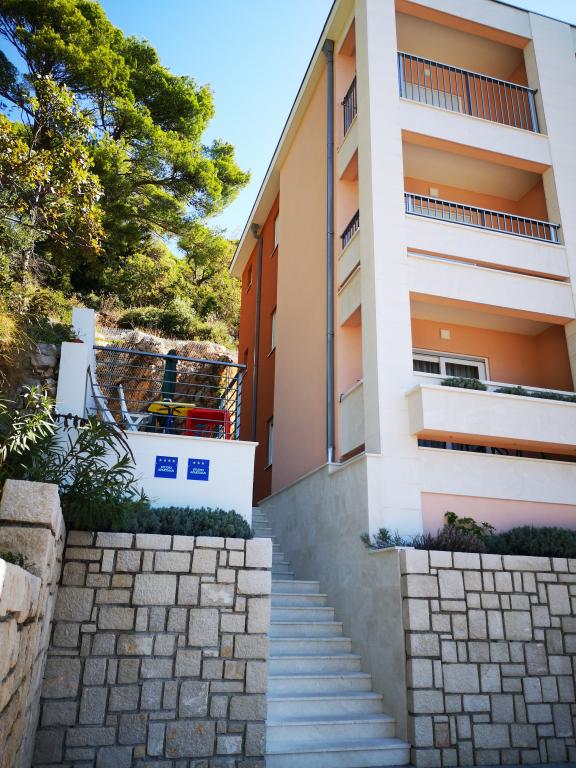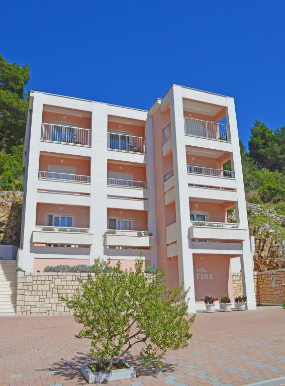 Villa Stina je nova moderna zgradba na izjemni lokaciji ob morju. Vseh 9 apartmajev ima balkon s pogledom na morje in plažo, ki vodi do stopnic tik pred hišo. Drvenik je majhno ribiško mesto, ki ponuja mirne počitnice. Le nekaj minut hoje od prve trgovine, restavracije in kavarne. Objekt je klimatiziran, parkirišče pa je pod video nadzorom.