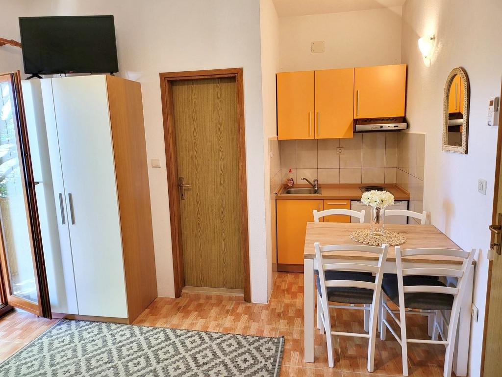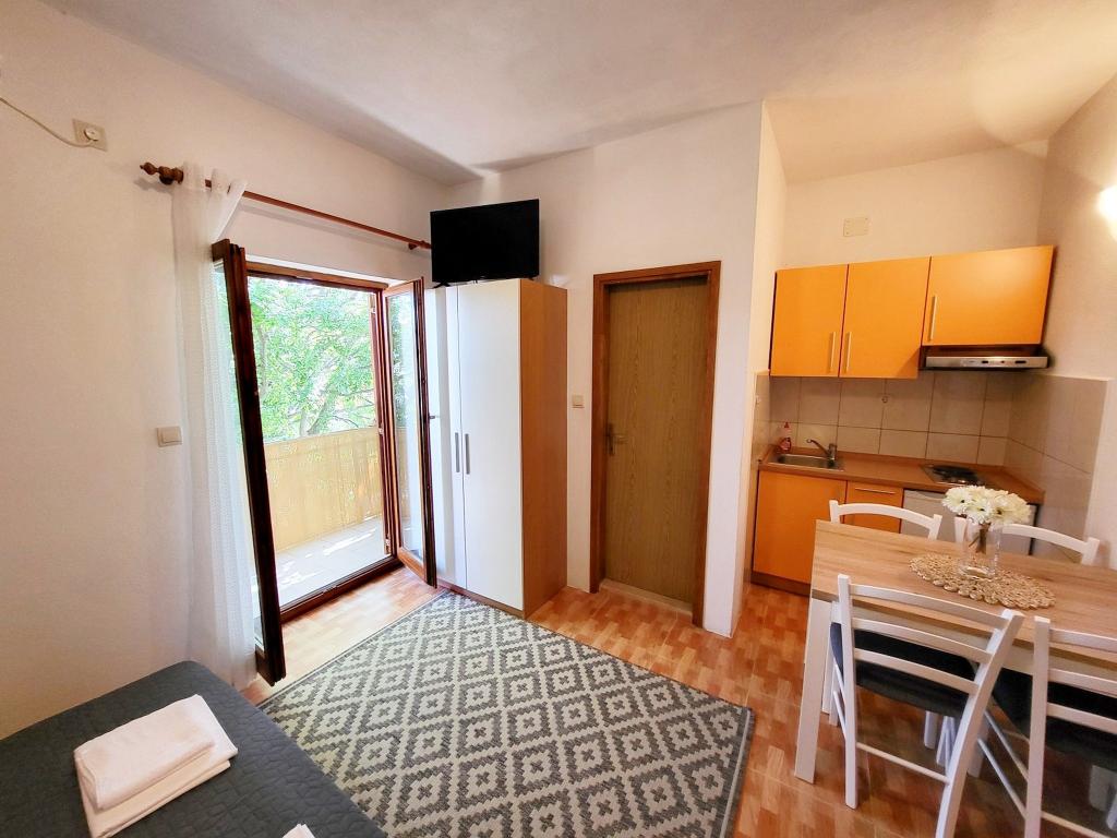 Studio apartma v majhni vasici Drvenik na Makarski rivieri. Lepe plaže, kristalno čisto morje na razdalji 200 metrov od apartmaja. Apartma ima parkirišče zaščiteno drevo pred sončnimi žarki. V bližini so vse potrebne zmogljivosti za kakovostno turistično počitnice tip restavracije, trgovine, kavarna, trajektom in avtobusom. Za so tisti, ki radi pohod nad mest na voljo, pohodniške poti. Odlična izbira za počitnice.