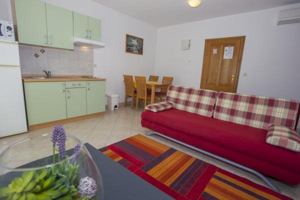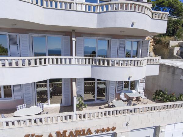 Popolnoma opremljene apartmaje z lepim pogledom na morje in mirnem kraju Drvenik. Restavracije, hitro in supermarketi se nahaja približno 5 minut. hoje od hiše Trajekt do otoka Hvar se nahaja približno 150-200m