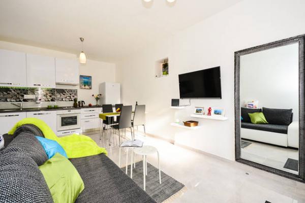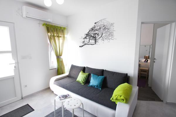Dobrodošli v novem, luksuznem, južno obrnjenem in sončnem enosobnem stanovanju z veliko teraso, popolnoma opremljeno, le 10-15 minut hoje do starega mestnega jedra! Apartma ima vse, kar potrebujete za udobno in prijetno bivanje tudi za daljše obdobje (pečica, mikrovalovna pečica, kuhalnik vode, kavni avtomat, velik hladilnik, zamrzovalnik, kuhalna plošča, posoda, pomivalni stroj, pralni stroj, sušilnik za lase, likalnik, miza za likanje, TV, wifi, klima...). Gostje imajo ločen vhod in mir. Idealen je za dve osebi, saj ima eno spalnico z veliko zakonsko posteljo z visoko anatomsko vzmetnico, lahko pa sprejme še dve dodatni osebi, saj je v dnevni sobi kavč, ki se raztegne v udobno ležišče 160x200. Odlična lokacija, tiho, varno in približno 10 minut od mesta, pa tudi ne potrebujete avtomobila, da pridete do starega mestnega jedra, vendar za tiste, ki ne marate peš, je avtobusna postaja približno 100 metrov od stanovanje, avtobusi 3 in 3a pa vozijo direktno na Pile, do avtobusne postaje in glavnega pristaniškega pomola (za izlete na otoke).
