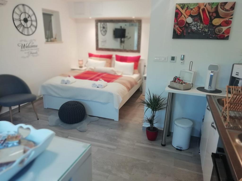 Majhen studio apartma se nahaja v centru Lapada, v bližini restavracij, promenade, avtobusne postaje, lekarne, plaže. Mirna slepa ulica, brez stopnic. Idealno počitniško stanovanje. Z gazdarico Jeleno se lahko obrnete kadar koli. Številka mobilnega telefona: 098 313 522