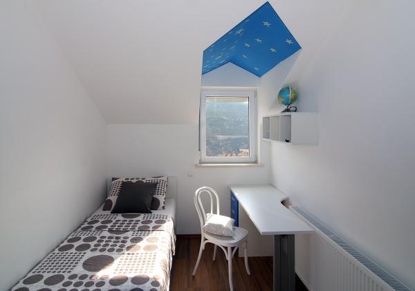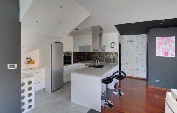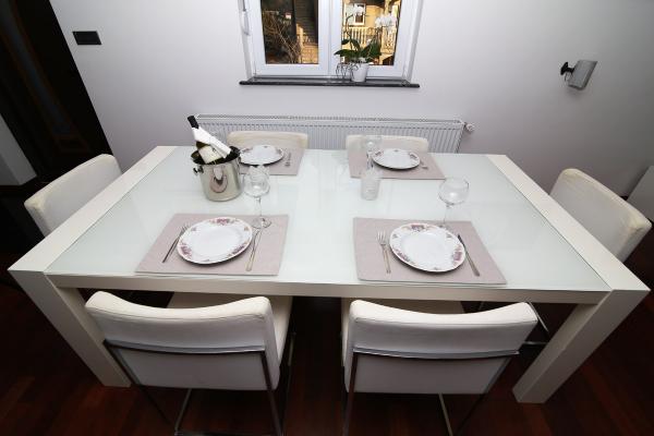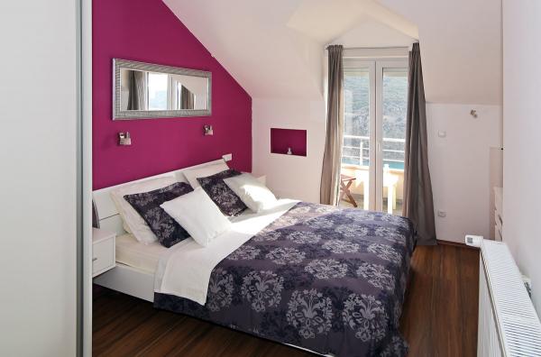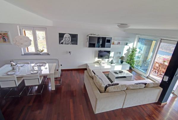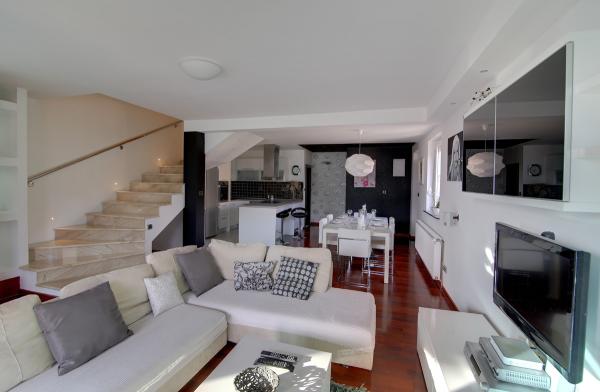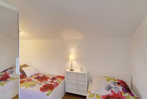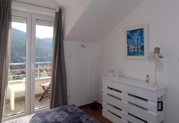 Moderno opremljeno dvonadstropni luksuzni apartma v hiši, 130 m2 se nahaja v Nova Mokošica, le 12 km stran od starega mestnega jedra Dubrovnika. Nahaja se v mirnem naselju v bližini oljčnih nasadov, dreves in zelenja, medtem ko je terasa in balkon ponuja lep razgled na reko Ombla, ACI Marina in hrib SRD. Na zgornjem nadstropju sta dve dvoposteljni sobi (twin soba), kopalnico s tušem in eno spalnico s kopalnico (Suita soba) je opremljena z masažno kopel za dve osebi in sušilcem za lase in balkon. On je spodnja etaža nahaja v ločen WC in moderno opremljeno kuhinjo (štedilnik, pečica, pomivalni stroj, pralni stroj, hladilnik, mikrovalovna pečica, posoda, kuhalnik vode, opekač kruha), jedilnico s prostorno dnevno sobo z LCD TV, notranji tovornjak in teraso . Apartma je klimatiziran, s brezplačni brezžični internet (Wi-Fi), parkirišče in zunanji žar. Najbližja plaža je oddaljena 5 km, trgovina 150 m, v radiju 300 metrov obstajajo bari, hitra hrana, bistro.