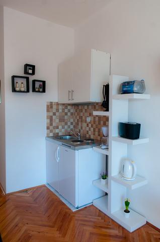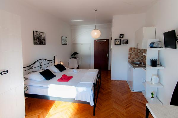 Stanovanje poljub se nahaja v najlepšem delu Dubrovnik svetega Jakoba ploščah, ki se nahajajo v 100 let stari hiši z lepim razgledom. Le korak stran od plaže in 10-15 minut hoje do starega mestnega jedra. Od stanovanjskih oknih lep pogled na morje, otok Lokrum in Old Town. Apartma je na novo obnovljena in je sestavljena iz veliko zakonsko posteljo, majhno kuhinjo, blagavaonskog miza, stoli in kopalnice. Studio je v celoti klimatiziran (ogrevanje, hlajenje) in je opremljen s ploščatim TV, SAT TV, Wi-Fi, stereo sistema, sušilec za lase, likalnik in likalna deska na zahtevo. Pravica do vaše hiše, je zasebno brezplačno parkirišče. S domači terasi lahko uživate čudovit pogled na morje starega mestnega jedra.