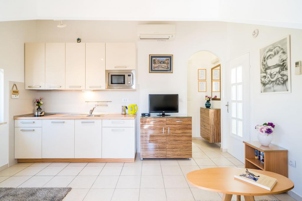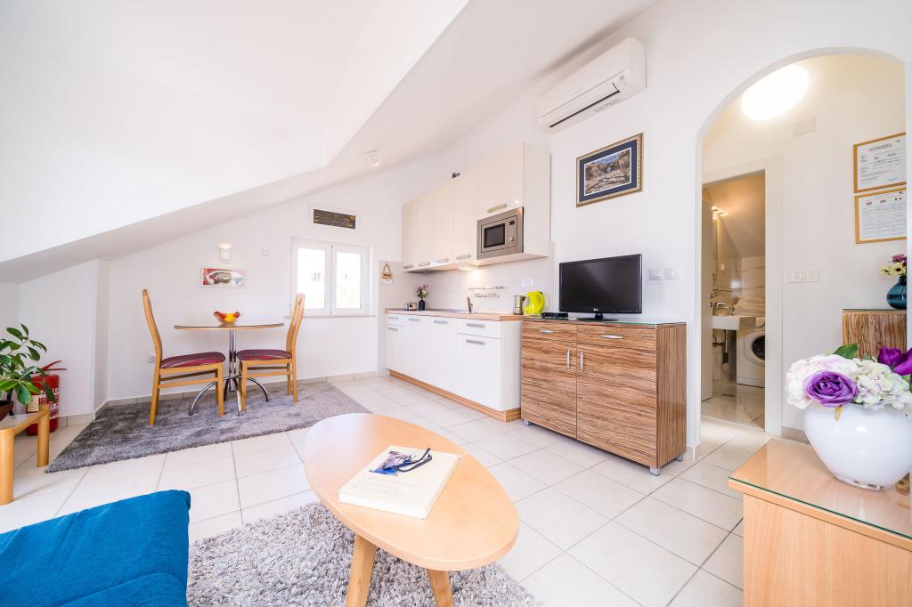 Najprej se Marijani še enkrat zahvaljujem za gostoljubje in prijaznost. Apartma ponuja vse, kar potrebujete, da se na dopustu počutite dodatno. Od Klima v dnevni sobi in v spalnici, pralni stroj, aparat za kavo, TV ponujajo različne v različnih jezikih. Ta apartma upravičeno pripada apartmajem Luxus. Pogled z balkona sega od Lapada do morja. Od apartmaja do plaže smo potrebovali 5-6 minut, lahek sprehod. Avto smo pustili na parkirišču iz stanovanja in ga med bivanjem nismo več uporabljali. Trgovine, restavracije, avtobusna postaja se nahajajo nekaj minut od apartmajev. Edino, kar bi lahko motilo nekoga, ki ima težave s koleni, so stopnice, ki vodijo do promenade in trga, nas osebno niso motile. Na to smo gledali kot na malo vadbe. Lapad nam je bil zelo všeč, stanovanje pa še bolj.