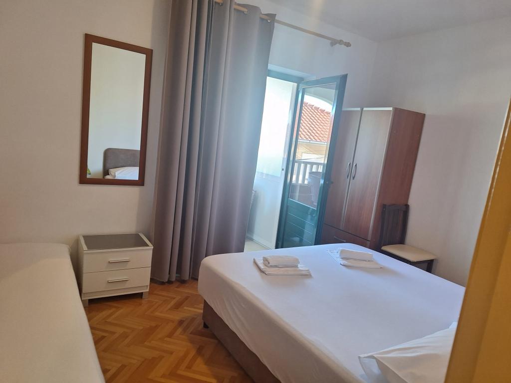 Zelo priporočam! Tukaj smo preživeli čudovitih 11 dni v dobro vzdrževani nepremičnini, popolnoma prilagojeni potrebam gostov. Apartmaji so zelo čisti, udobni in dobro opremljeni – kuhinja ima vse, kar potrebujete. S terase lahko ob jutranji kavi občudujete čudovit razgled na morje. Gostje imajo dostop tudi do prostora za žar in miz, kar je idealno za večerna druženja. V okolici je vse, kar potrebujete: trgovine, pekarne, restavracije in veliko zanimivih krajev za obisk. (še posebej priporočamo restavracijo Dalmacija z okusno kulinariko in vzdušen bar na plaži s točenim pivom in dobro hrano) Peščena plaža je le nekaj korakov stran. Gostitelji so neverjetno prijazni, gostoljubni in vedno ustrežljivi – poskrbeli so, da smo se počutili resnično dobro. Ta kraj ima vse, kar potrebujete za odličen dopust, in zagotovo se bomo vrnili!