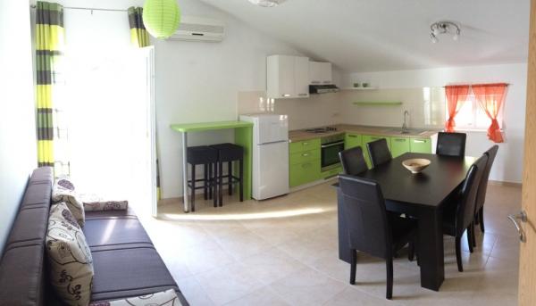 Popolnoma opremljeni apartmaji v družinski hiši v Duce, v bližini plaže. Apartma A2 +2 (a) in A2 +2 (b), se nahaja v pritličju in imata teraso. Apartma A6 +2 se nahaja v 2. nadstropju (mansardi) z balkonom (balkon iz kuhinje). Vsak apartma ima ločen vhod. Klimatska naprava in wi-fi internet vključen v ceno.