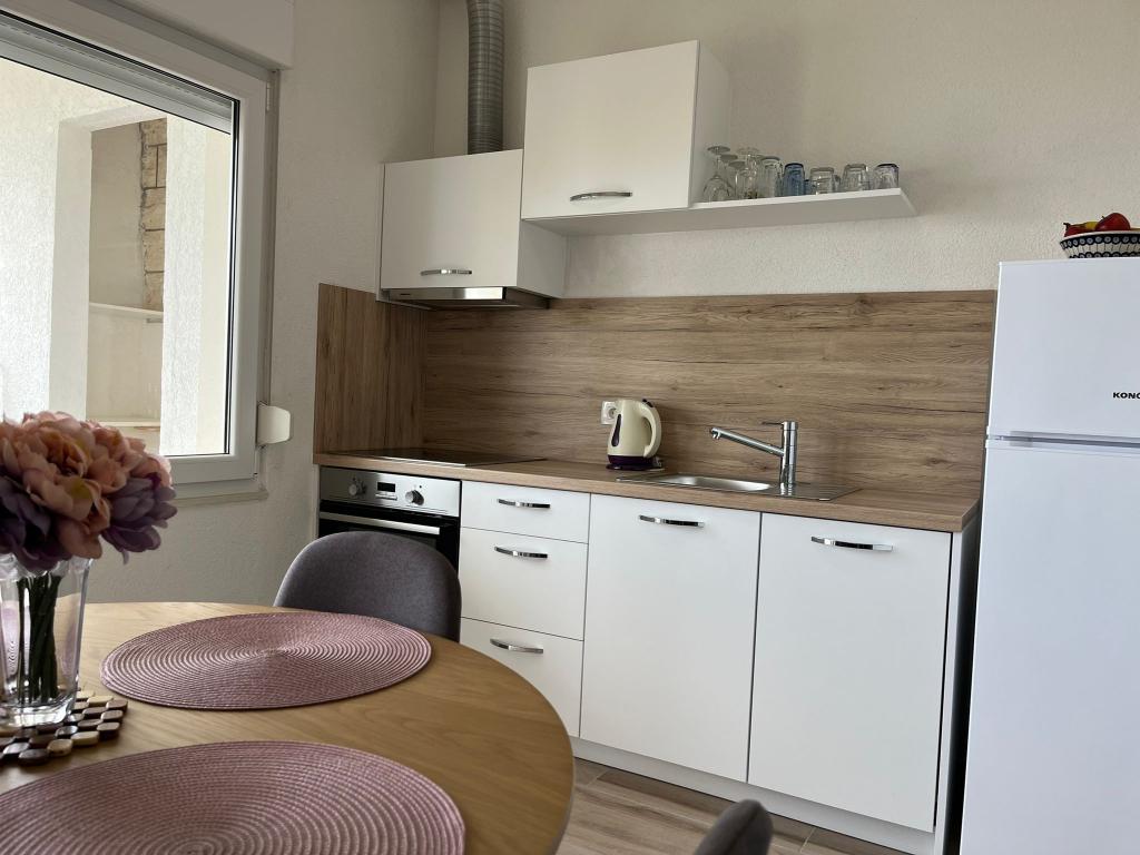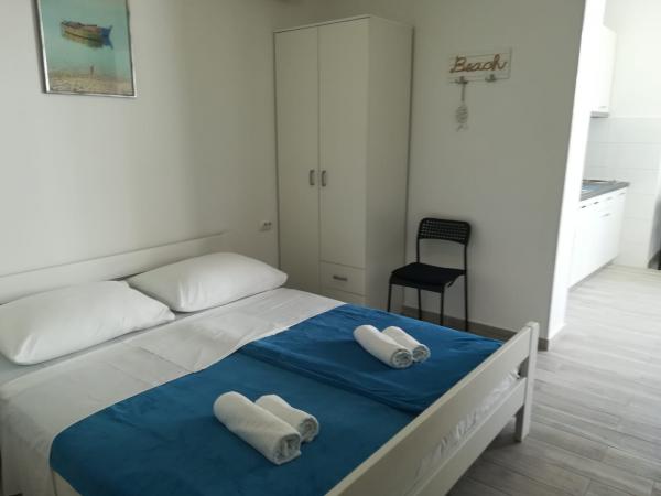 Odličen kraj za družine in še več. Stavba z domačim vzdušjem, odlični lastniki. Na voljo čisto, udobno parkirišče. Sam apartma je zelo svež, dobro opremljen in nudi veliko udobja za 4 osebe. Super velika terasa. Naše stanovanje ni imelo pogleda na morje in smo ga izbrali namenoma, ker je bilo zelo tiho in intimno, morje in lepe peščene plaže pa so tik čez cesto (zelo blizu voznih pasov). Toplo priporočam in se zahvaljujem Mariji za lepo bivanje.
