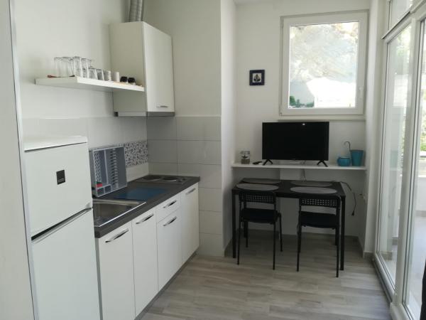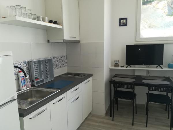 Zelo prijazni in prijazni gostitelji, prenovljen studio - s kuhinjo, kopalnico in čudovito cvetlično teraso, ki večer in jutranji zajtrk prijetno. Oprema stanovanja je nova in funkcionalna. S terase je neposreden izhod na plaže, približno 20 m. V bližini je trgovina in več restavracij. Parkiranje pod hišo. Mirna okolica, 30 minut peš do centra Omiša. Zelo smo veseli, da smo ostali na tem mestu