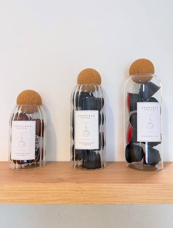 Apartma Cvita je čudovit na novo prenovljen apartma namenjen max. 6 oseb. Sestavljen je iz 3 spalnic, kuhinje, jedilnice, dnevne sobe, kopalnice s tuš kabino in balkona. Apartma vključuje neomejen Wi-Fi, Smart TV, pomivalni stroj, pralni stroj, klimatsko napravo. Vsaka soba ima tudi stropni ventilator. Gostom je na voljo brezplačno zasebno parkirišče. Brisače in posteljnina so na voljo v apartmaju. Gostje lahko uživajo v mirnih večerih s čudovitim pogledom na morje.