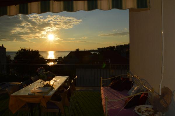 Villa RIA se nahaja v centru mesta Dugi Rat, v bližini glavne ceste, in le 30 metrov od obale, z lepimi peščenimi plažami, ki so ena izmed najbolj znanih plaž med Trogir in Omiša. Vila RIA z odlično lokacijo, odlično notranje opreme in garancijske storitve za sproščene in brezskrbne počitnice. Stanovanje se nahaja v drugem nadstropju. Dve spalnici, velika dnevna soba s kaminom, velika kuhinja, kopalnica, WC, SAT TV, klima, in velika terasa s čudovitim pogledom na morje ... Terase so posebni prostori, kjer lahko imate zajtrk in uživajte trenutke globoke sprostitve. Nudimo tudi nastanitev v sodobno in popolnoma opremljene sobe v vili RIA. Villa Ria vas pozdravlja v dvoposteljni sobi s kopalnico, tušem in beneških balkoni. Vse sobe imajo satelitsko televizijo, klimatsko napravo in internet. Brezplačno parkirišče za vse goste, zajtrk na zahtevo za doplačilo.